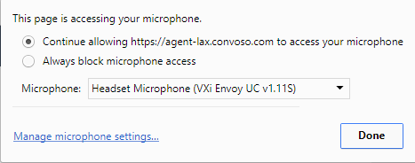 You will then be prompted to allow or block the microphone access for the Convoso Agent Interface.