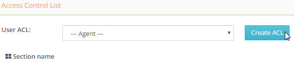 Type in a new name for the agent's custom access control settings in the User ACL box. Click on the Create ACL button.