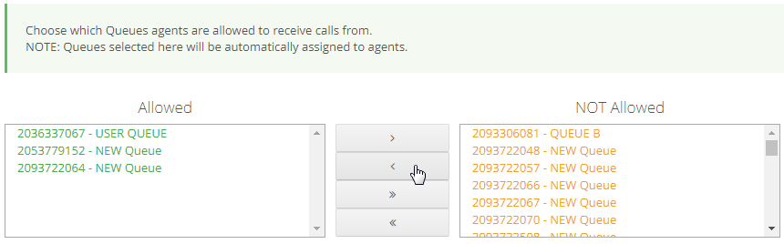 - Select the Queues from the Not Allowed box and select the directional button.