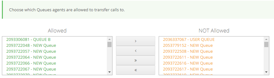 In Choose which Queues Agents are allowed to Transfer calls to.