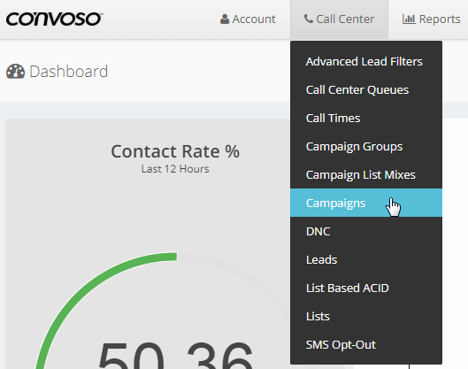 In the Dashboard. Go to Call Center and select Campaigns.