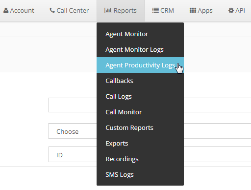 From the Dashboard, click on Reports and then click on Agent Productivity Logs.