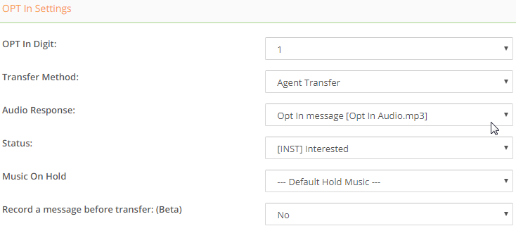 - Audio Response: Select the Audio File that will play once lead decided to OPT IN