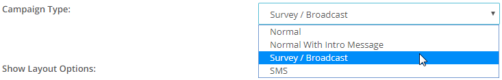 Under General Tab, scroll down to Campaign Type and select Survey / Broadcast.