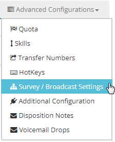 Click on Advanced Configurations and Tab and select Survey/ Broadcast Settings from the drop down.