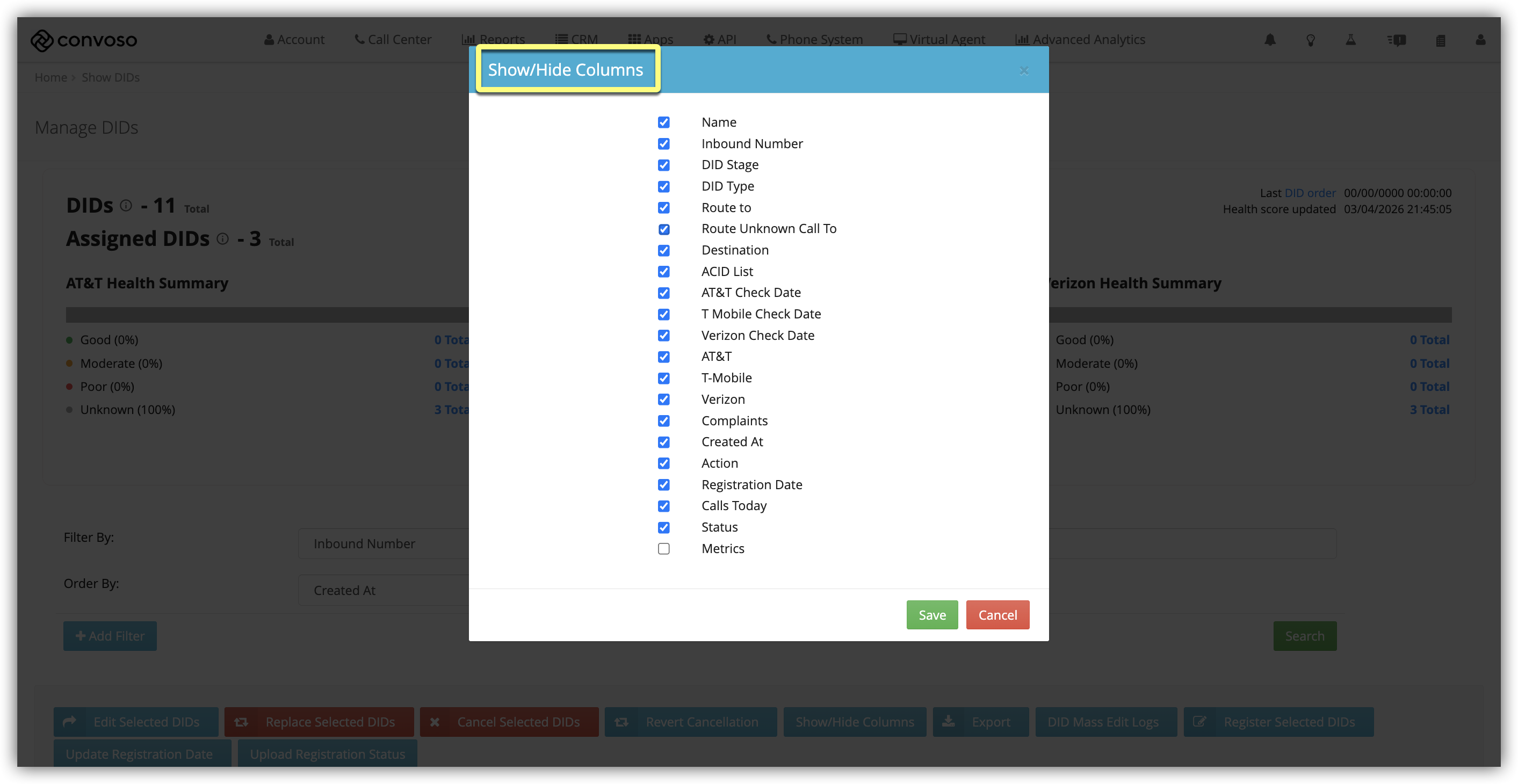 We will also look at how to change how your DIDs are displayed within your Account. Convoso's system shows your DIDs in an adjustable table to suit different Admin's needs.