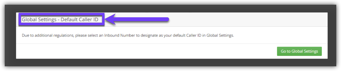 Note: If you get this Global Settings-Default Caller ID window, the phone number set in the Default Caller ID (Account Settings) is not owned by Convoso. You need to change it to a DID number owned by Convoso.