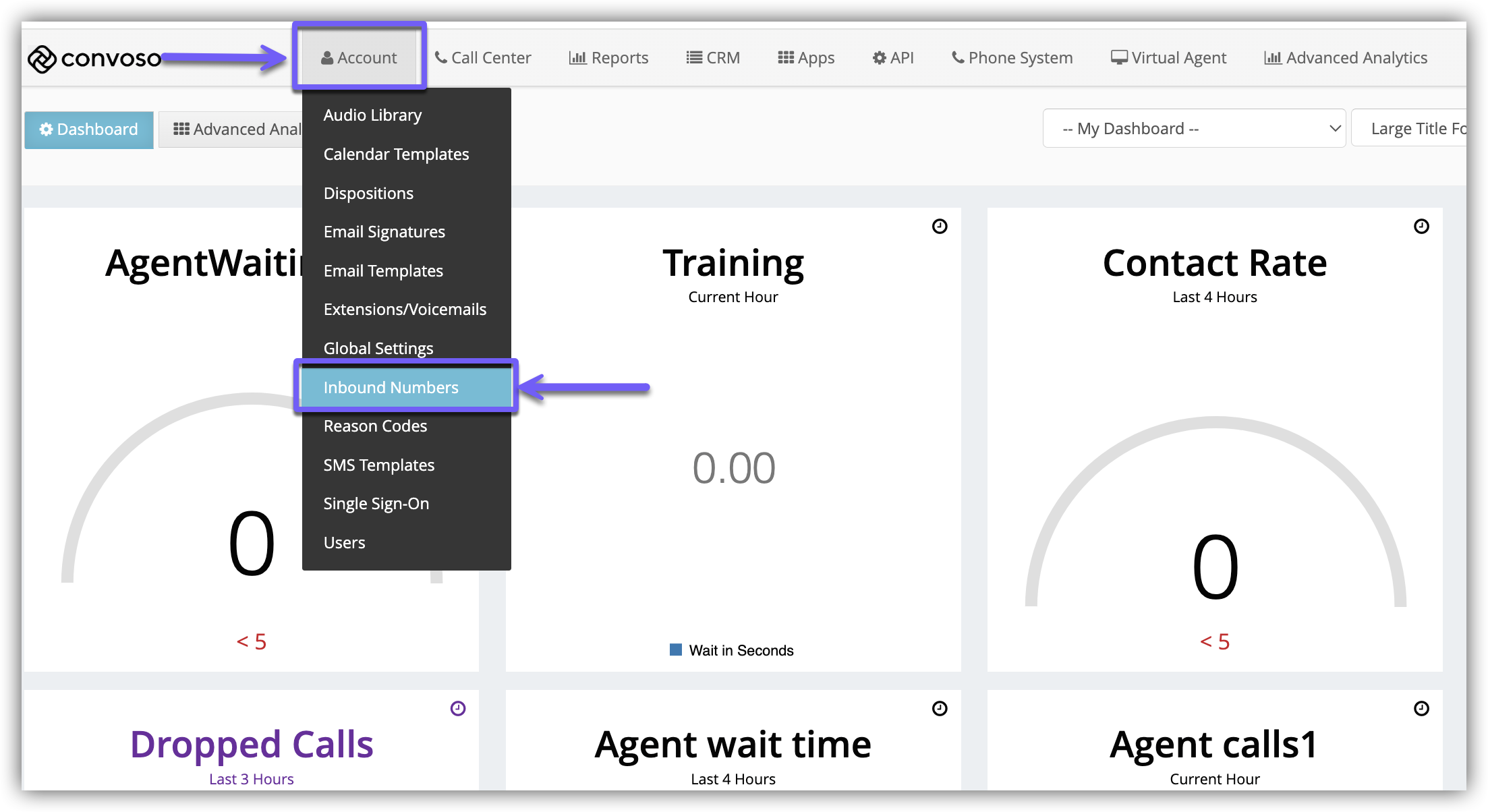 2.) Click the Inbound Numbers menu option.