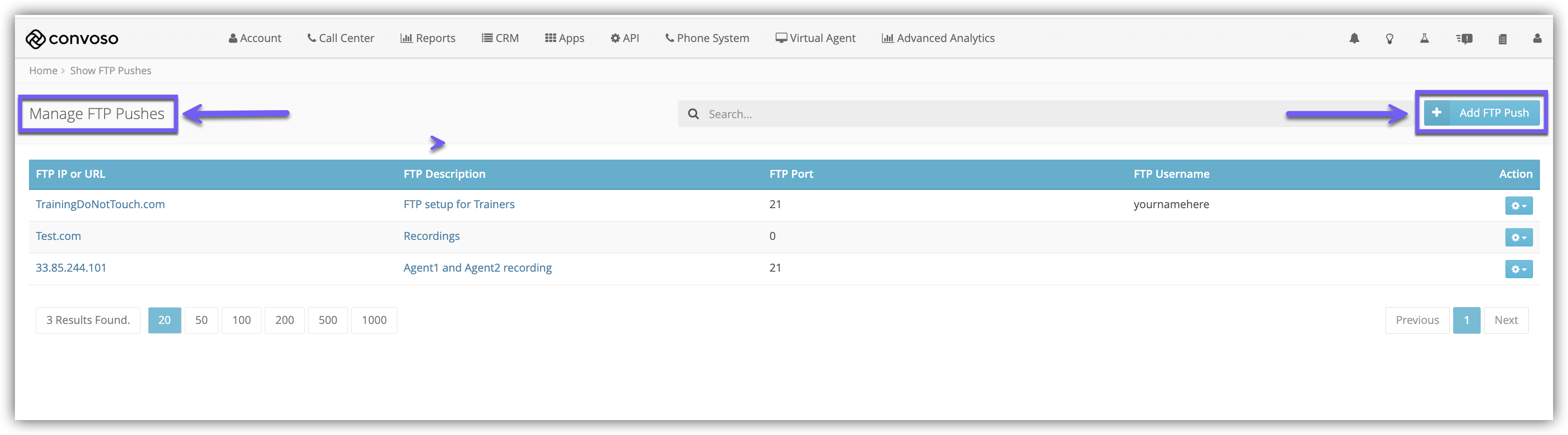Note: You will need access information for your FTP and folder destinations to configure your FTP Push with those details.