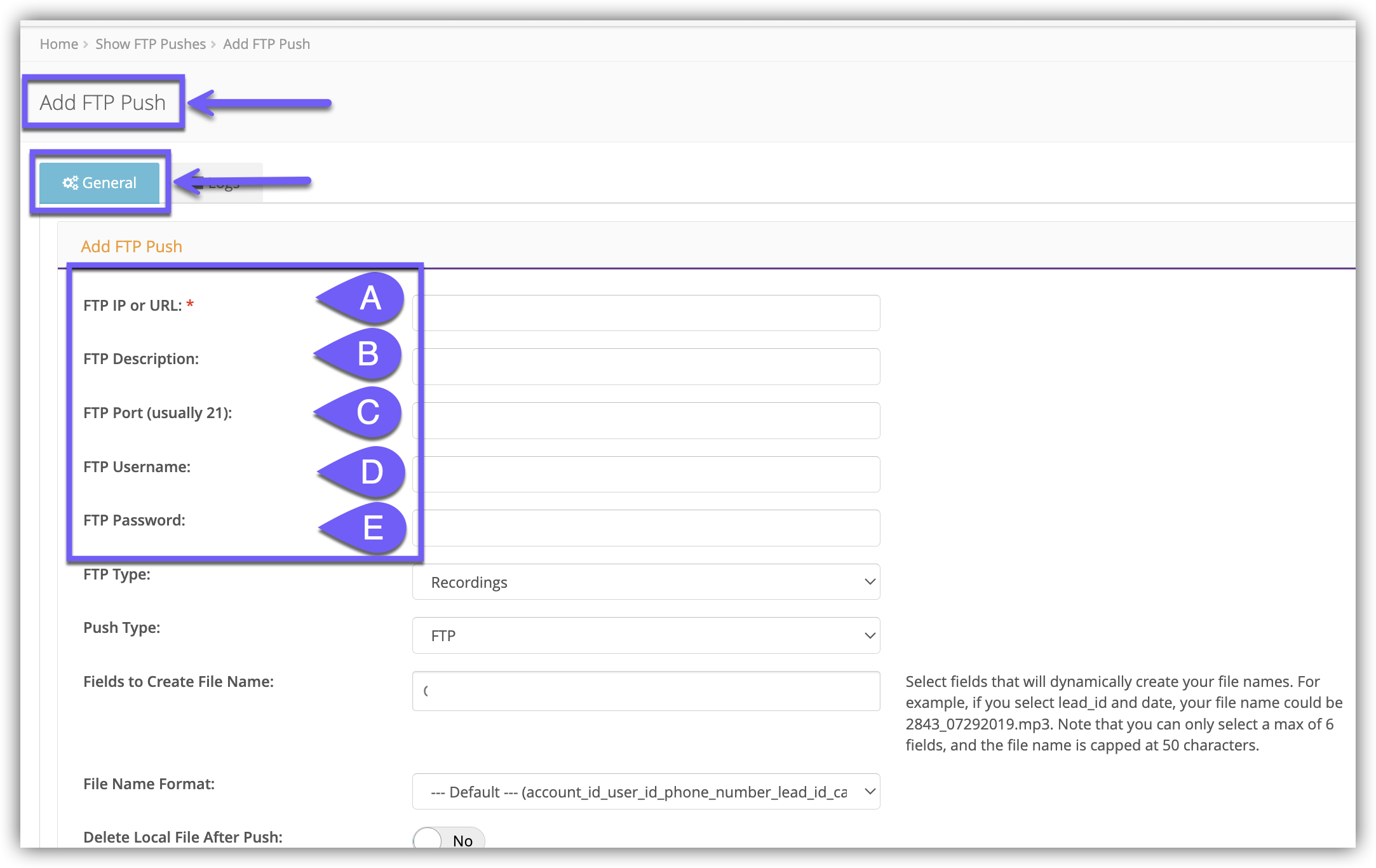 - (B) FTP Description (Optional): Enter a short description for the FTP Push.
