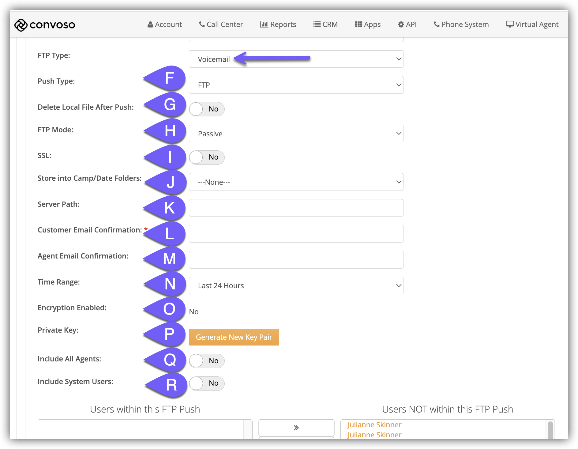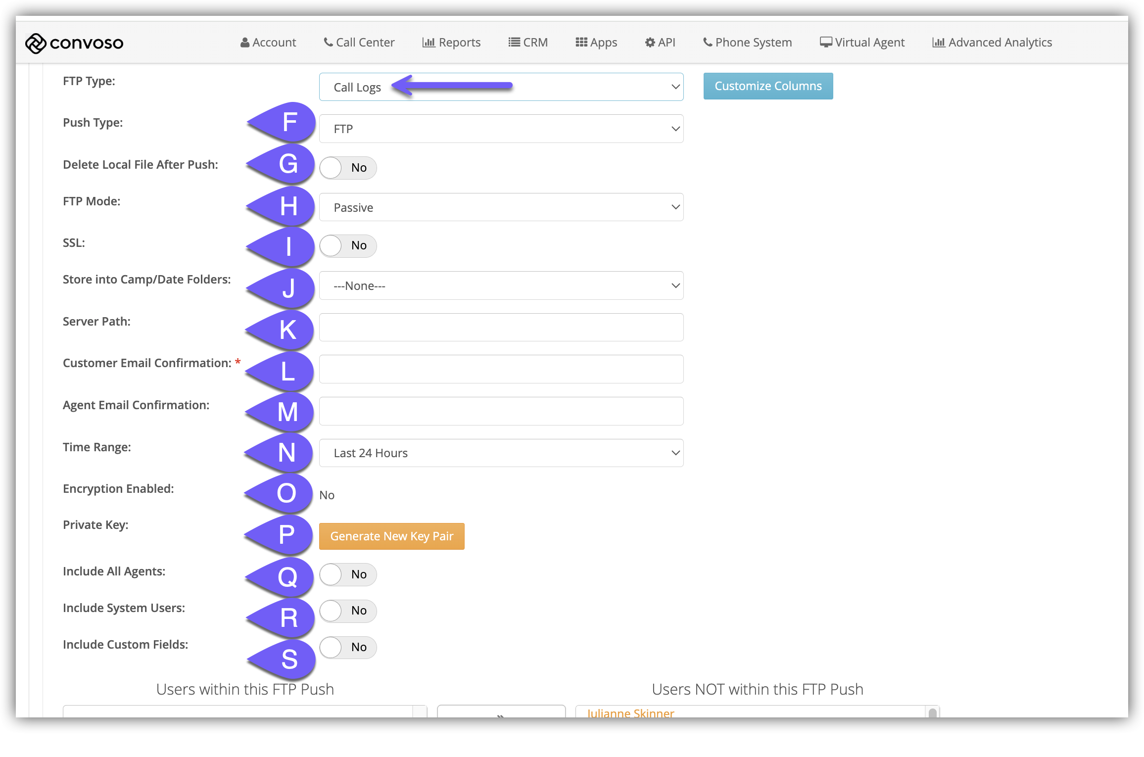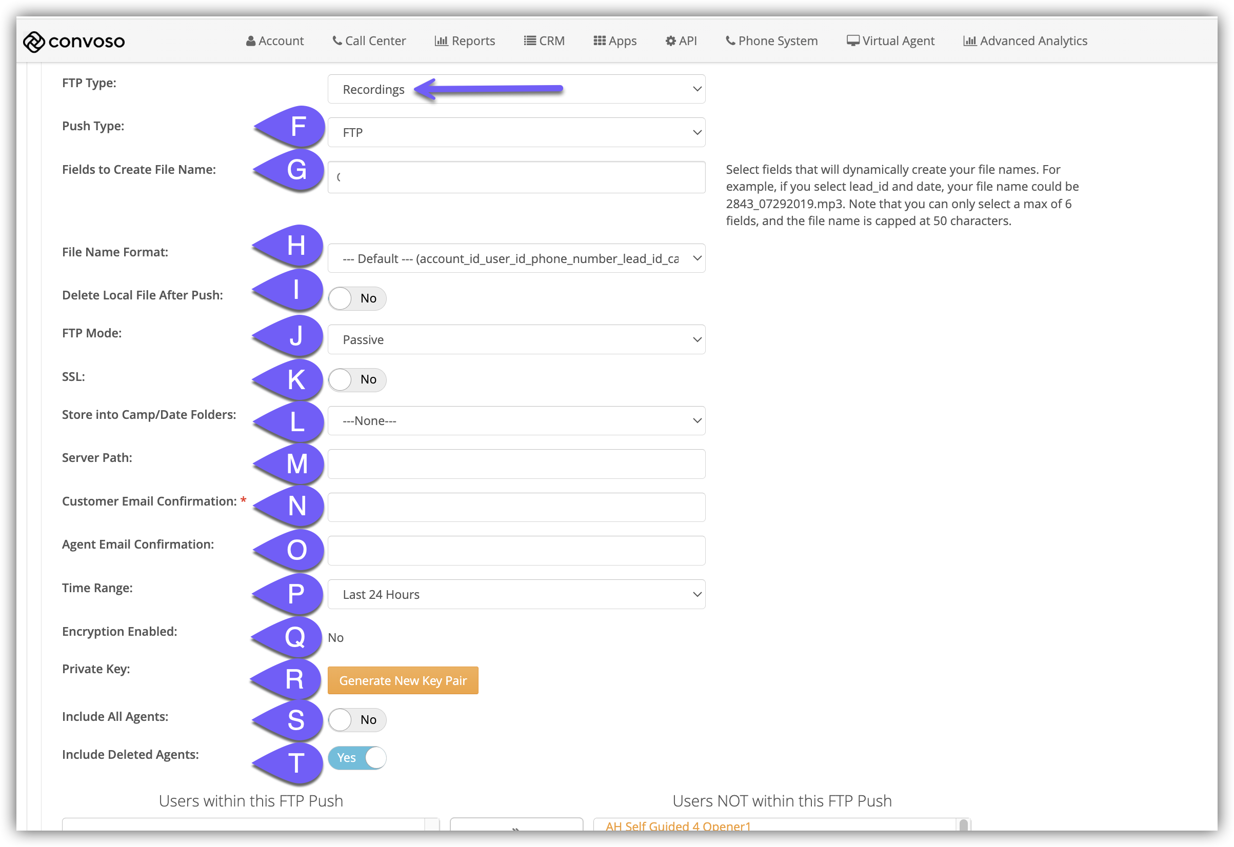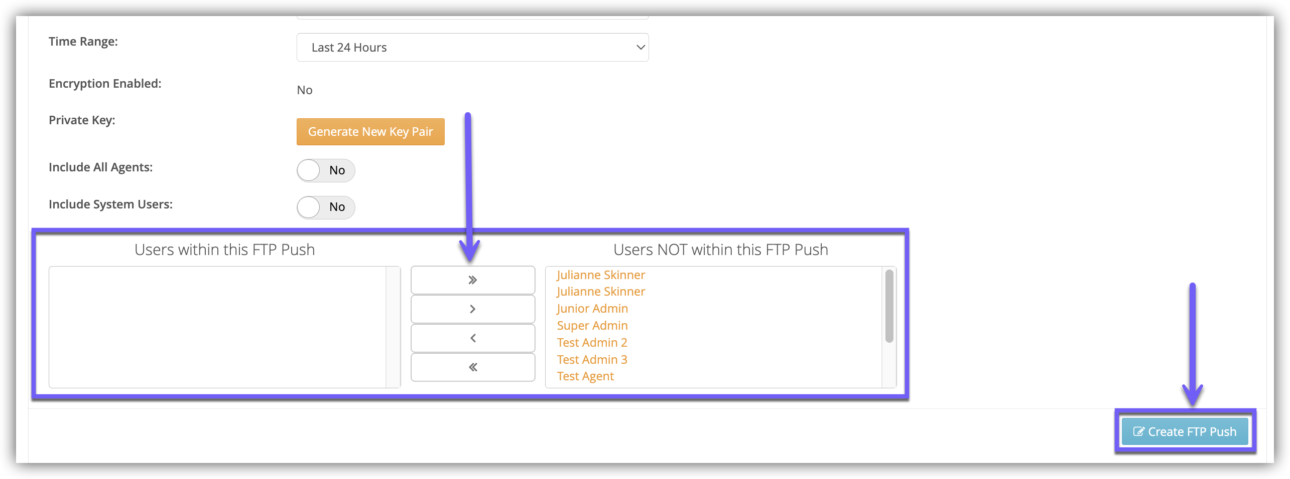Set to Yes if you want all Users included in the FTP Push. Otherwise, you can select specific Agents using the Users within this FTP Push field. -