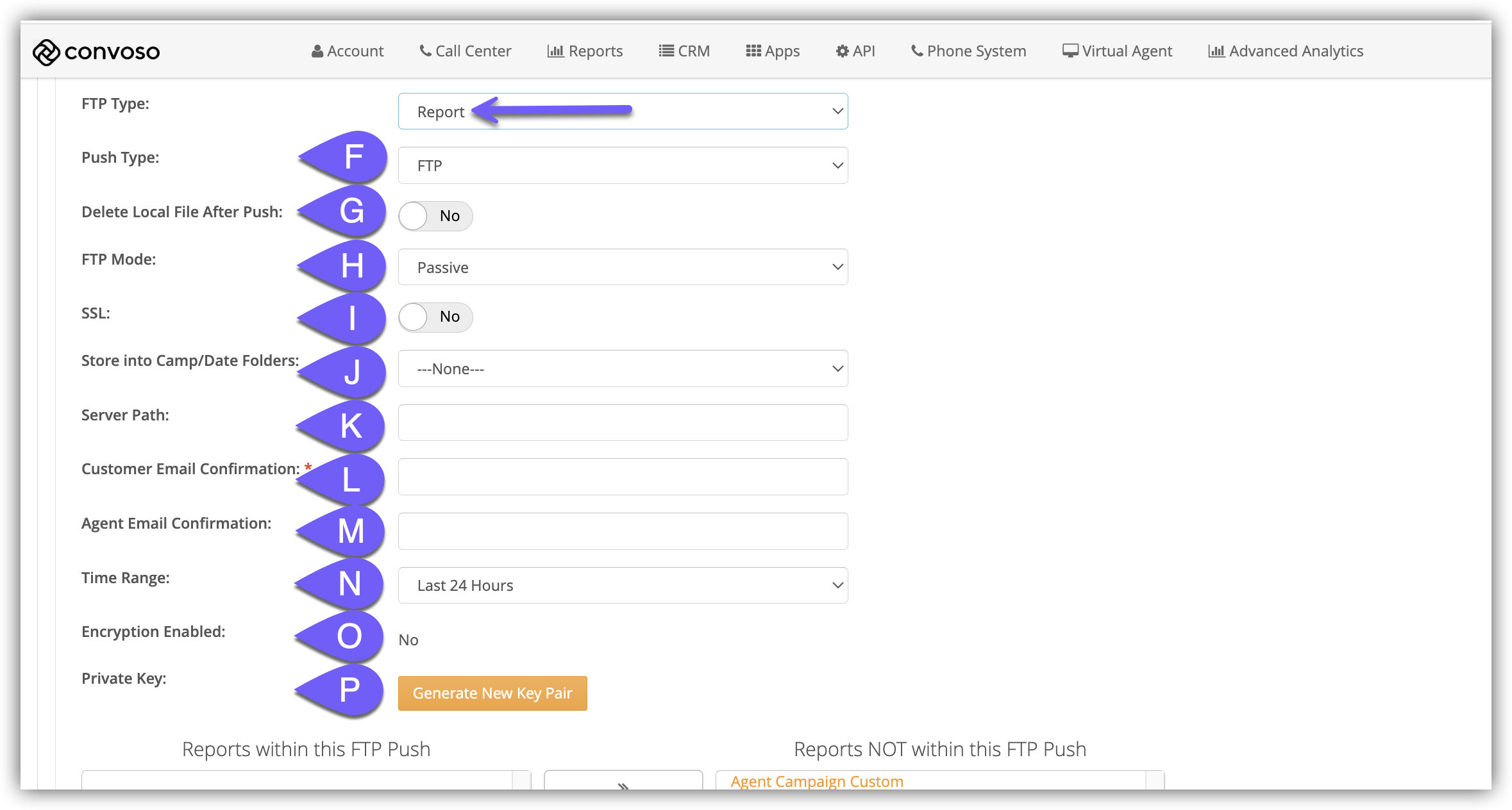 Configure the following fields. These will filter what data will be pushed to your FTP Server.
