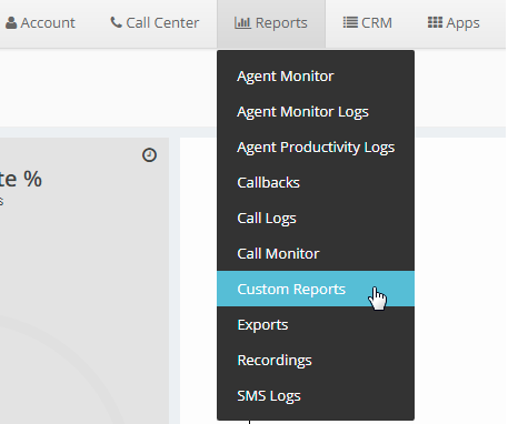 From the Dashboard, click on Reports and select Custom Reports from the drop down.