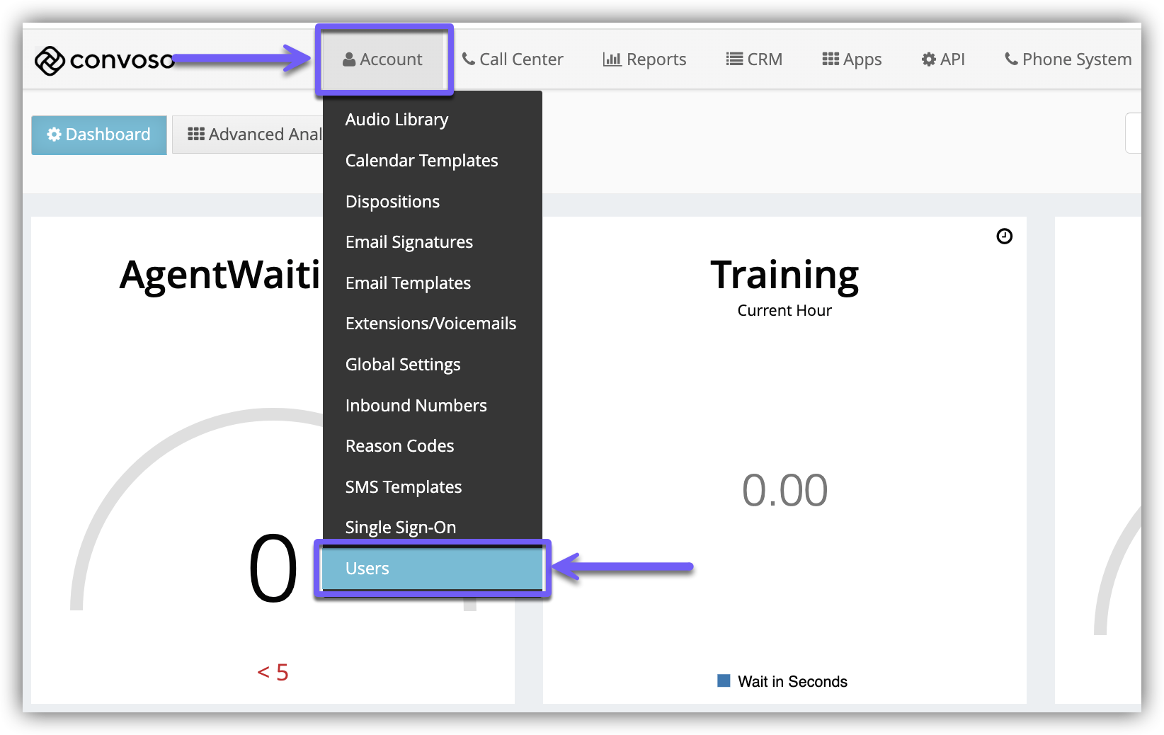 2.) Click the Users menu option.