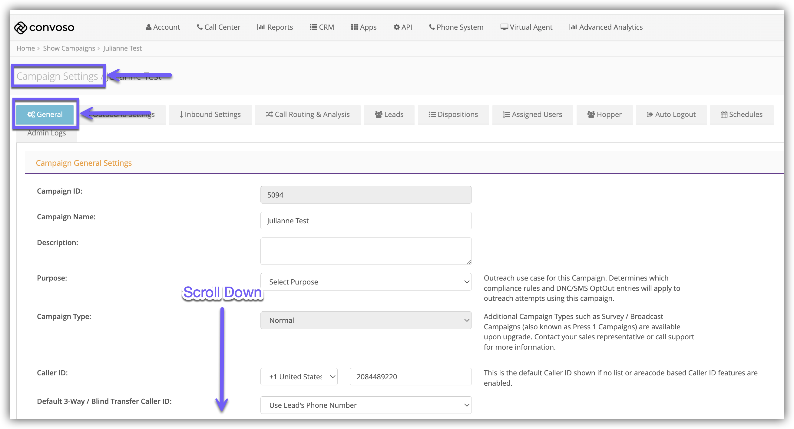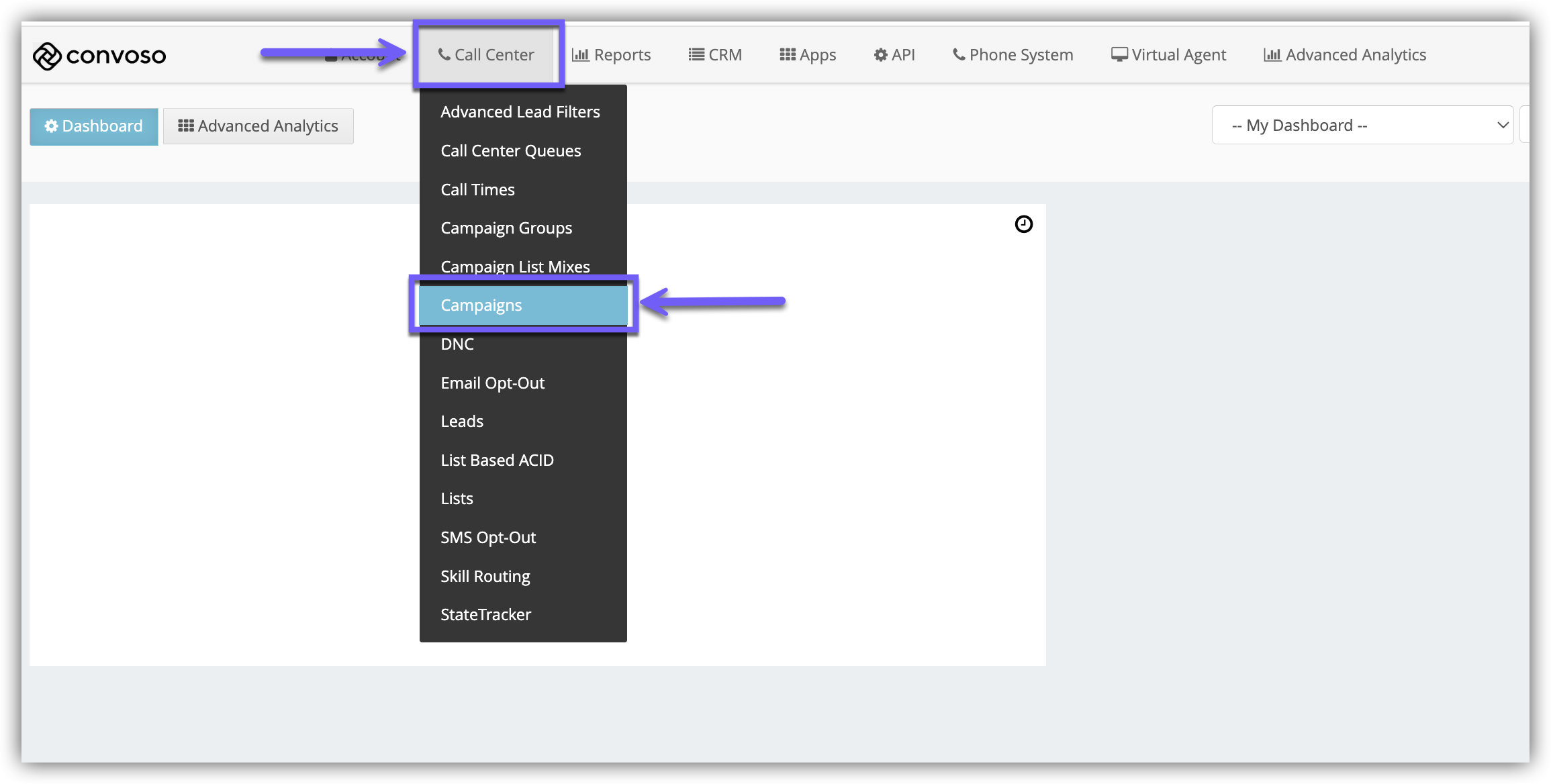 1.) Click the Call Center main menu.
