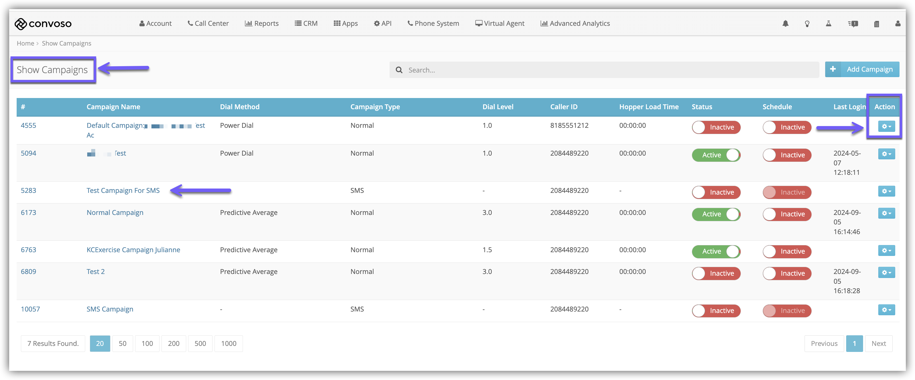 The Show Campaigns page will open.