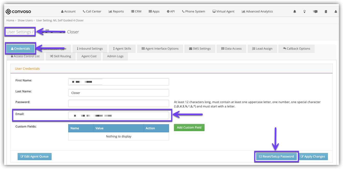 - Convoso's password reset process depends on emailing Users a password reset link. To complete this process, all Agents will need to have a functional email address that can receive the reset password link.