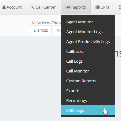 From the Dashboard, click on Reports and select SMS Logs from the drop down.