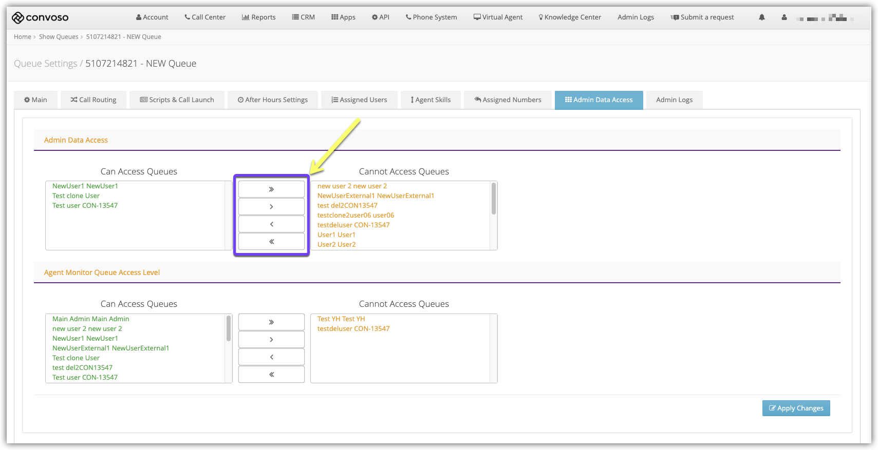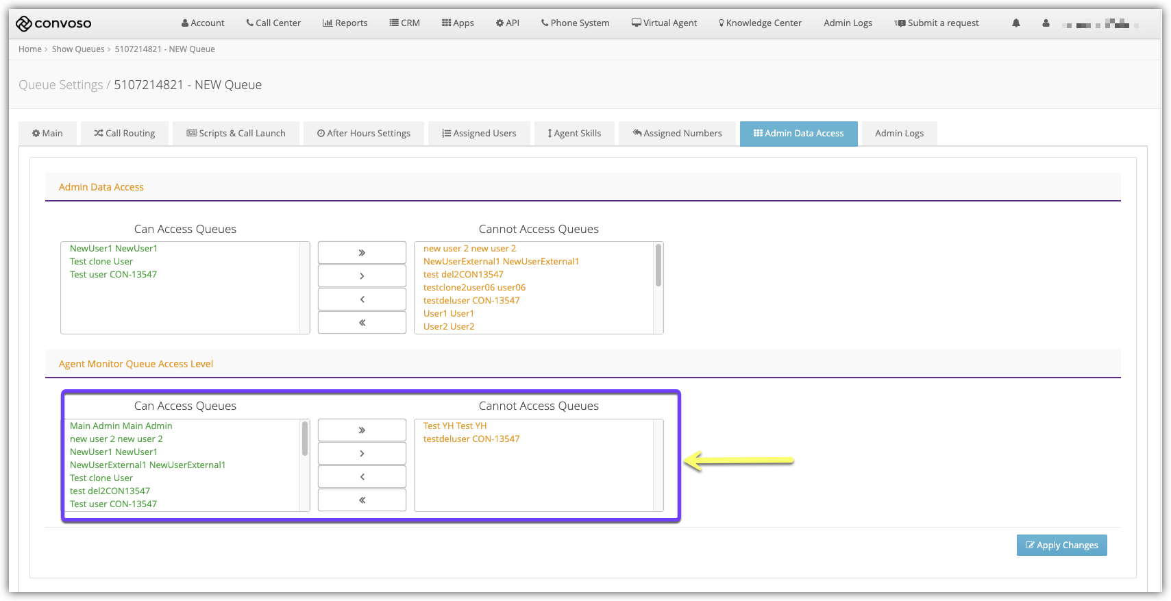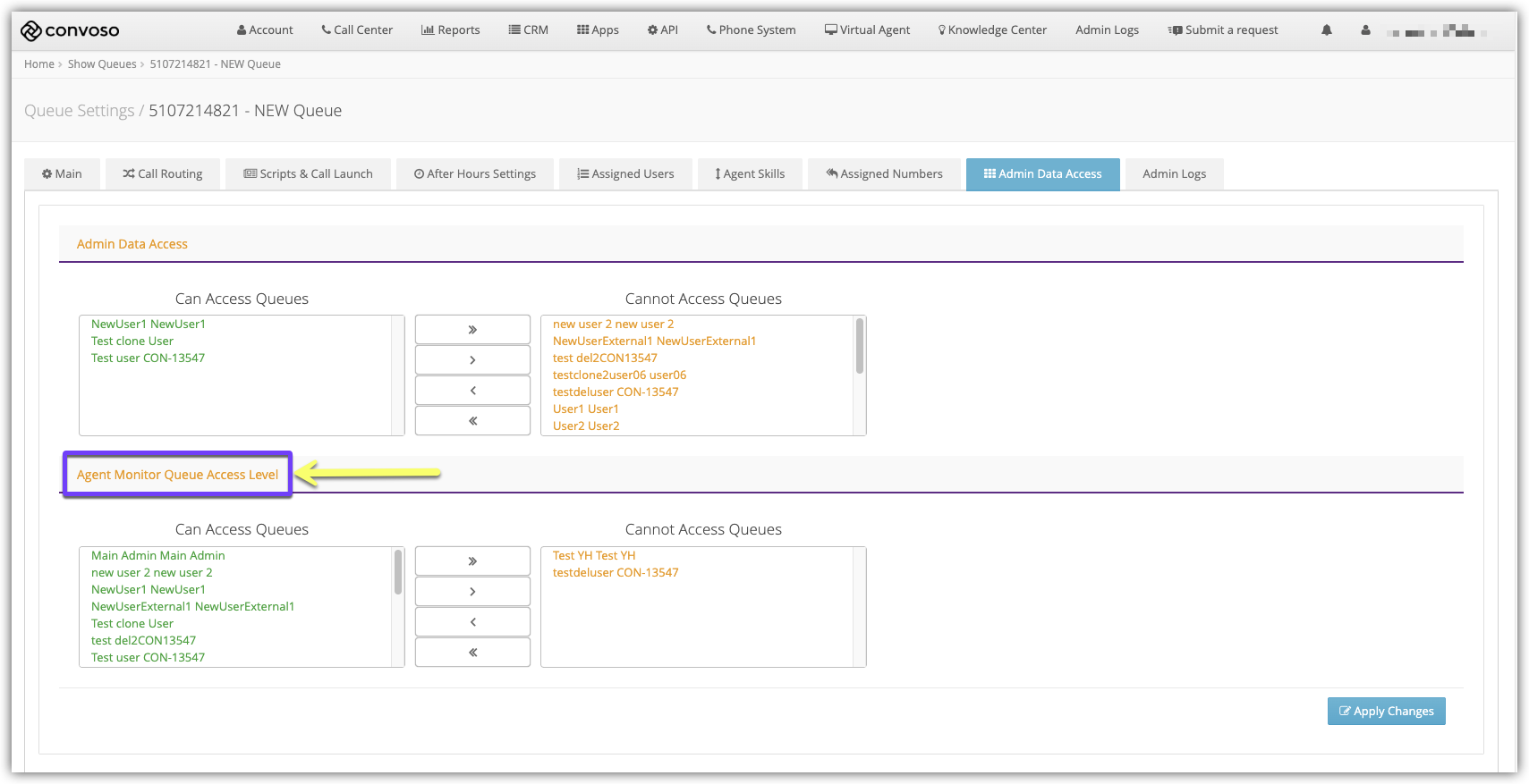 Select which users can access Queues from the Agent Monitor.