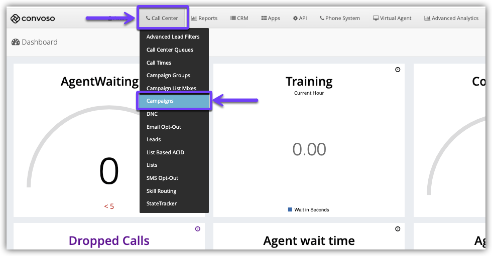 - Click the Call Center main menu.