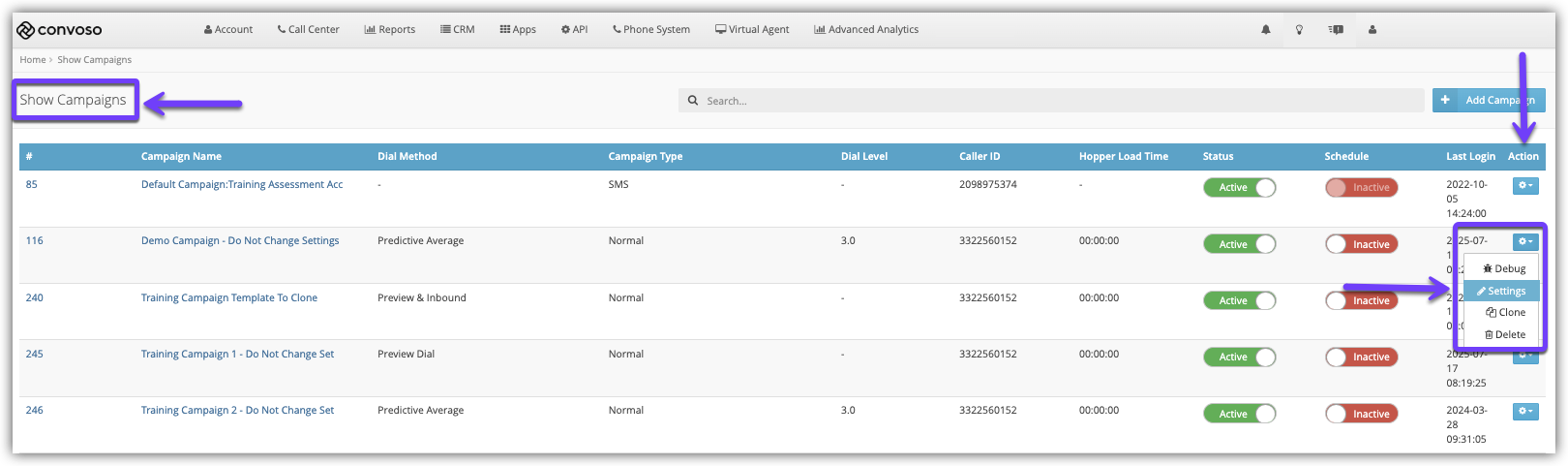 The Show Campaigns page will open.