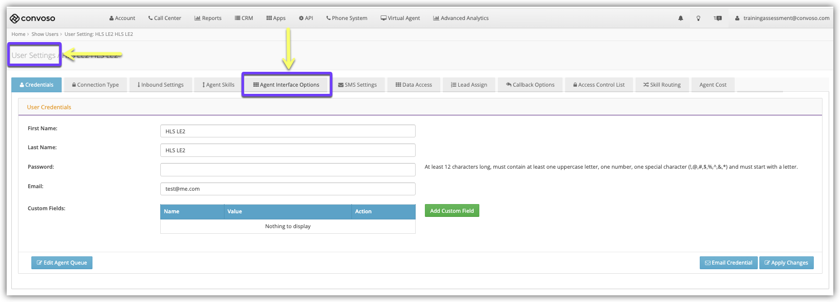 - Click the Agent Interface Options tab.