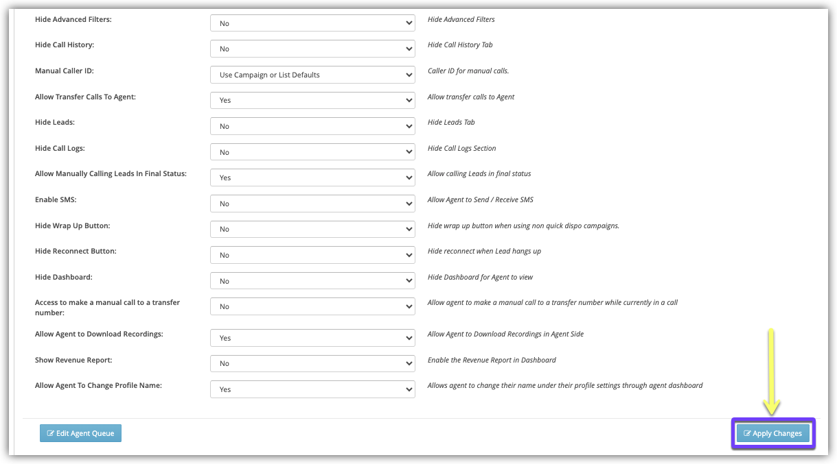 If Agents are currently logged in, please have them logout and back in for the new settings to take effect.