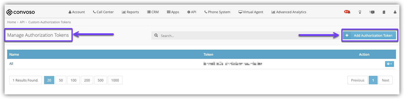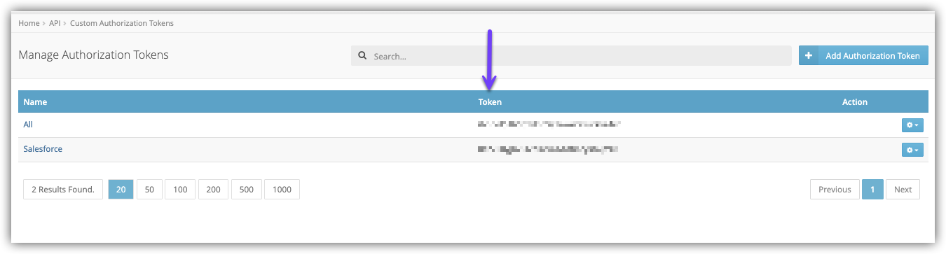 On the Manage Authorization Tokens page, copy the generated token from the Token column store it securely.