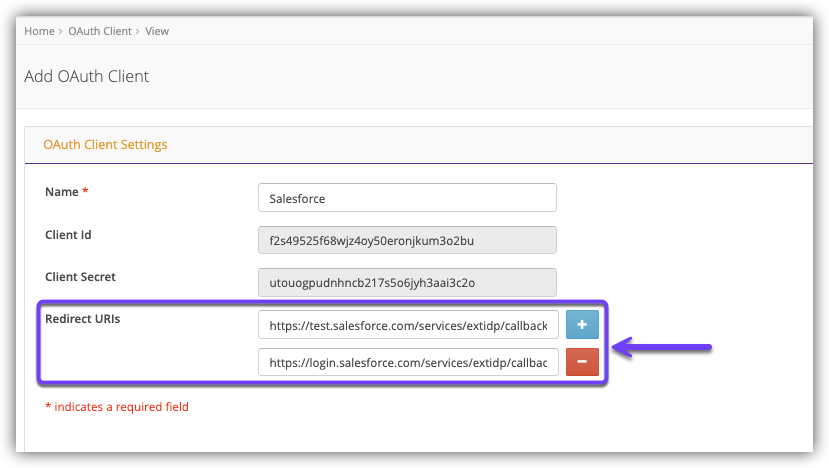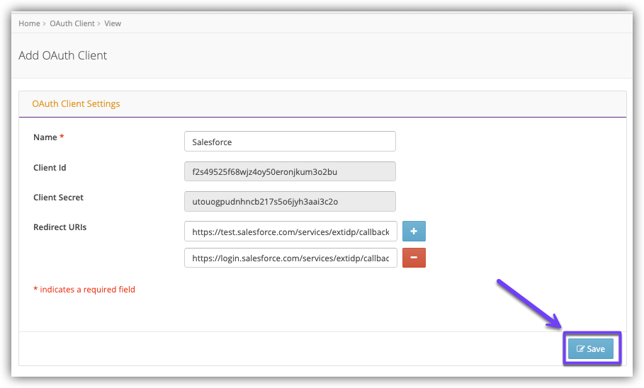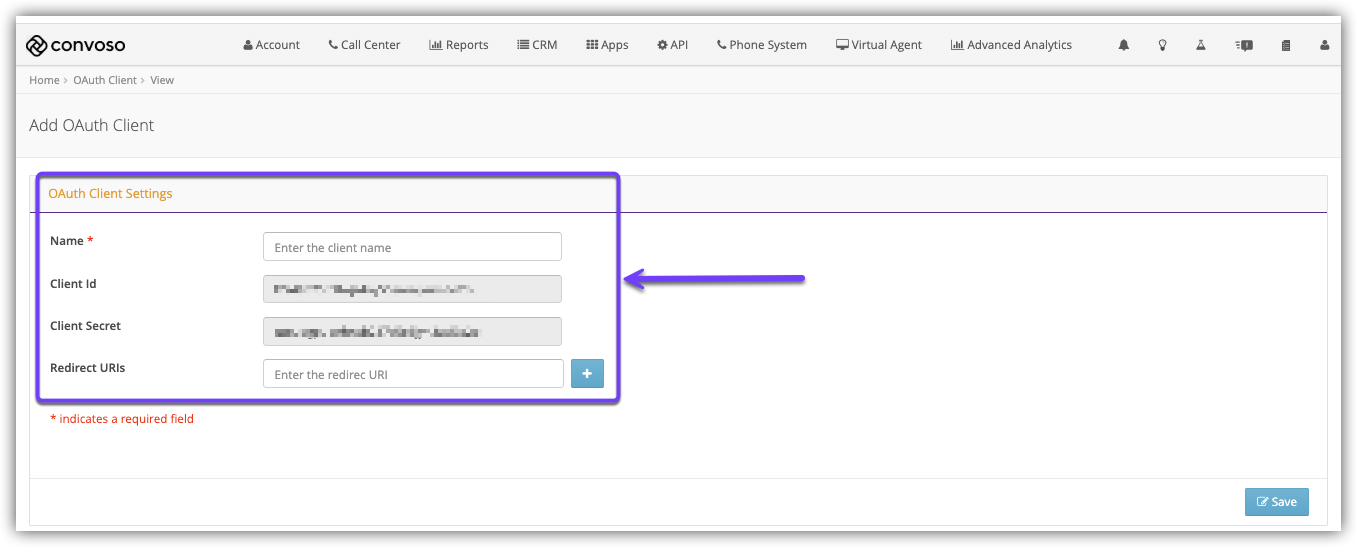 The Client ID and Client Secret are automatically generated and cannot be edited.