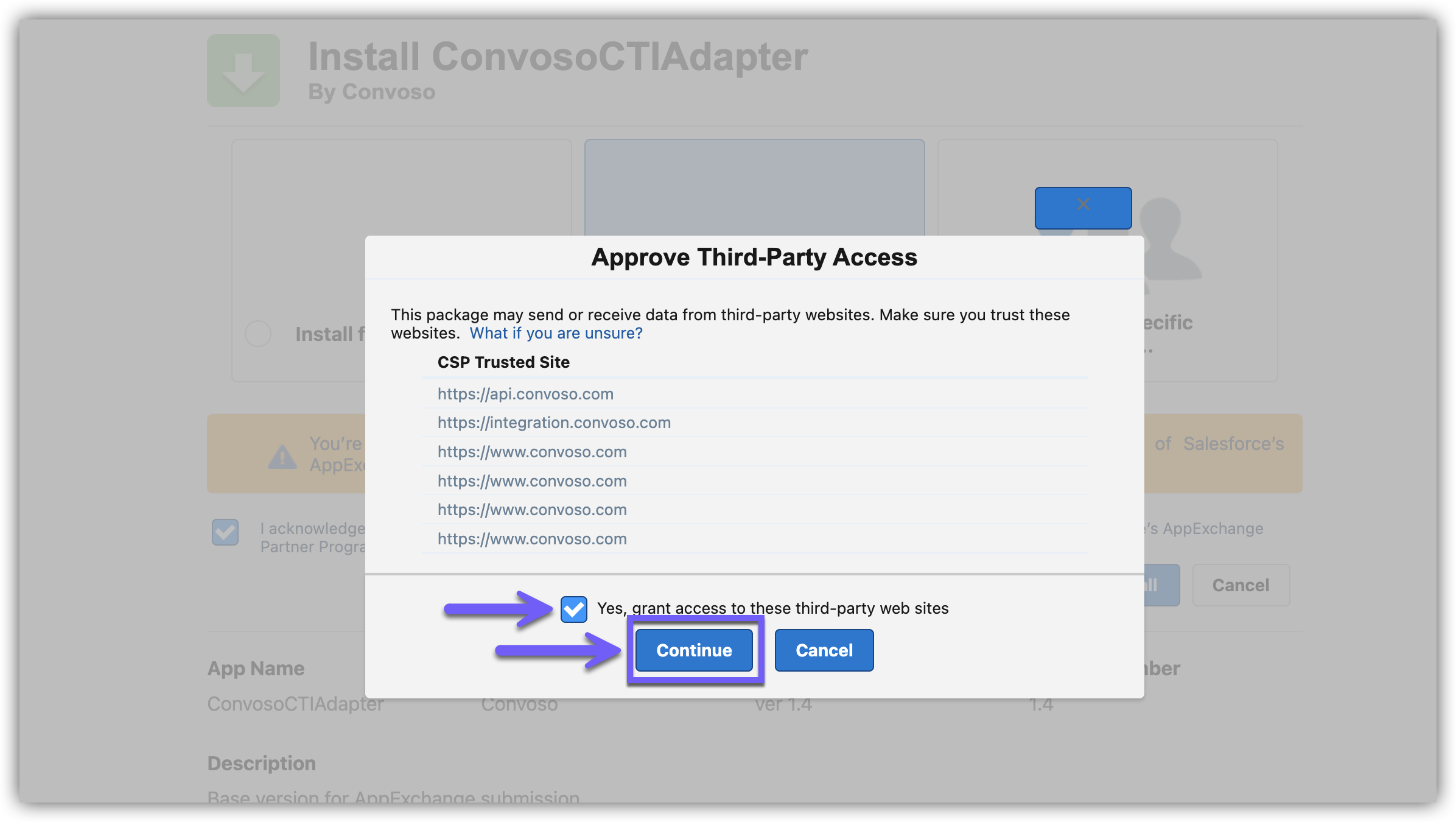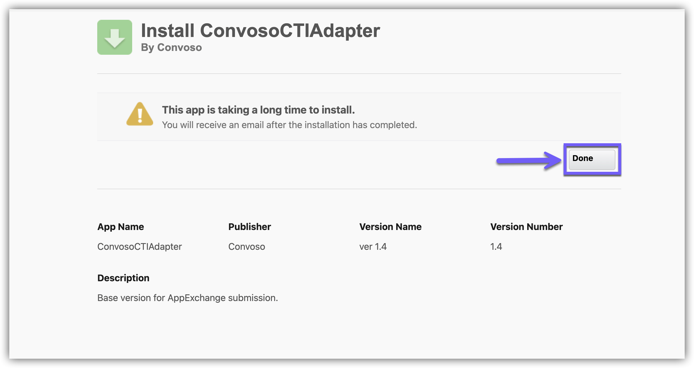 The package page for Install Convoso CTIAdapter By Convoso will open.