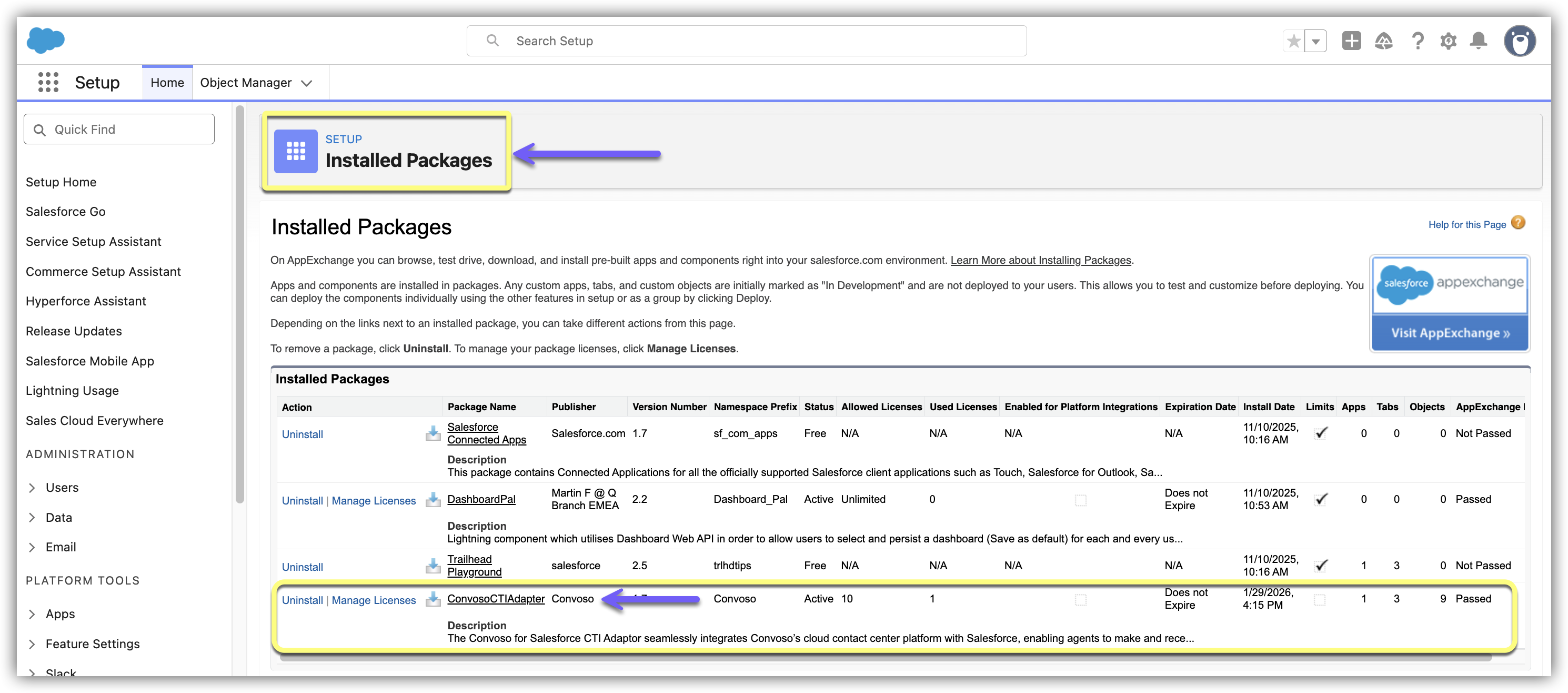 NOTE: Convoso for Salesforce is an account add-on and is downloaded via the Salesforce Agent Exchange.