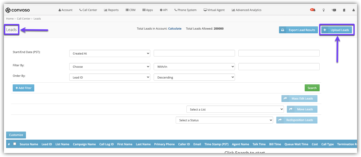 Leads are the people you dial, and without uploading Leads, you cannot use the system. That being said, Convoso makes it easy to upload new Leads.