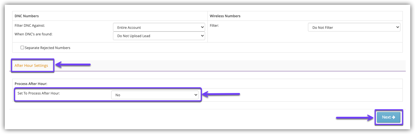 11.) Select whether the system will process the Leads now or wait until a specific time in the Set to Process After Hour drop-down.