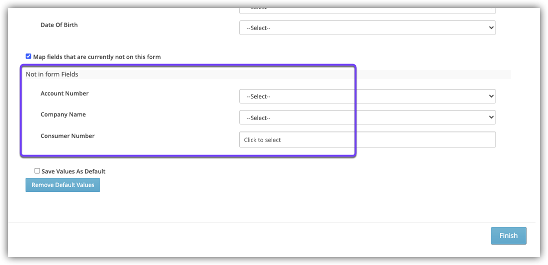 Check this box to map Lead Fields that are not in the Form Fields above:- These fields will open below when the checkbox is checked.