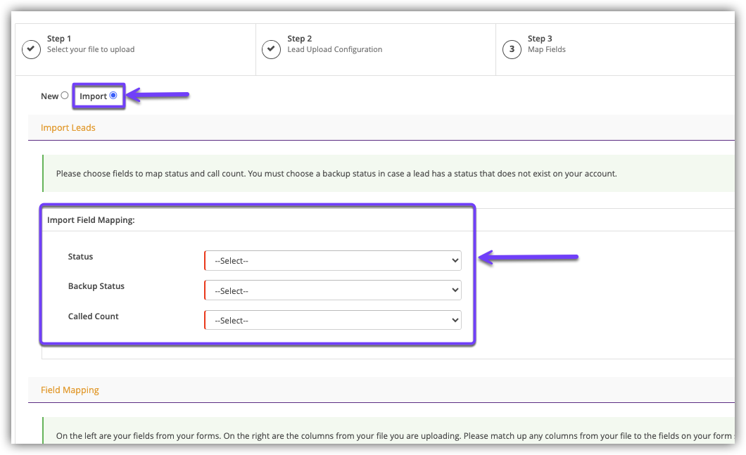 - Backup Status: If any of the Status Abbreviations do not have a match in the system, this will be the Status of the uploaded Leads.