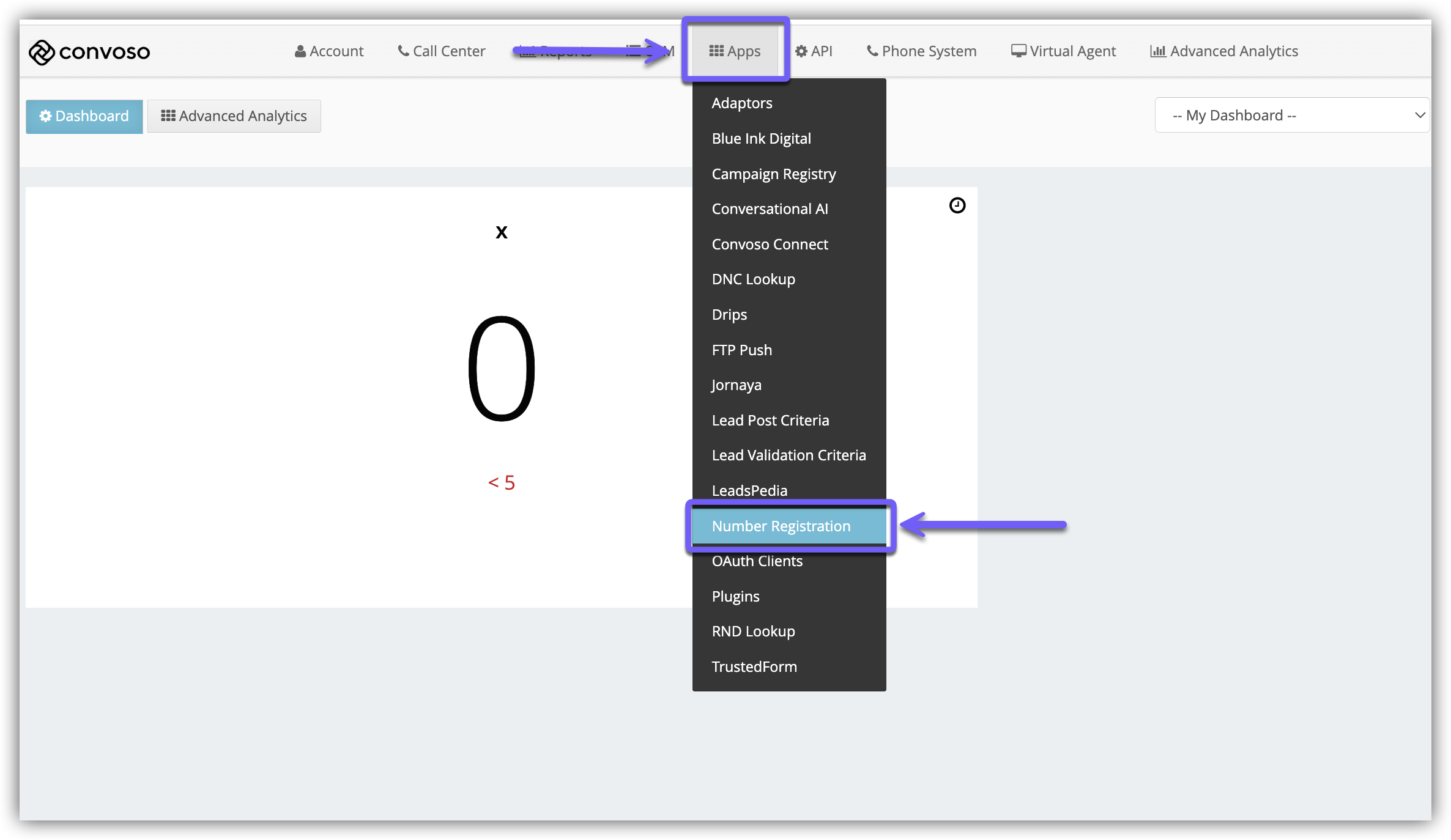 Click the Number Registration menu option.