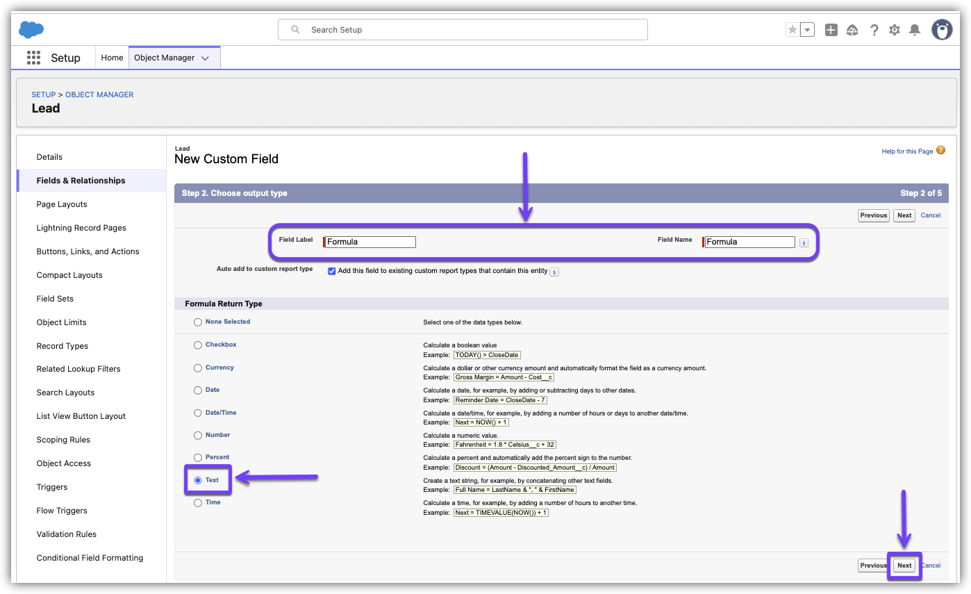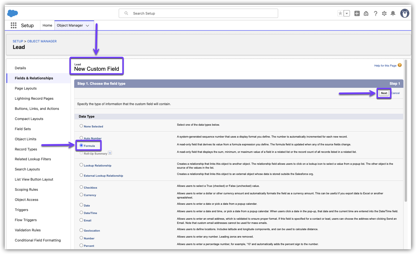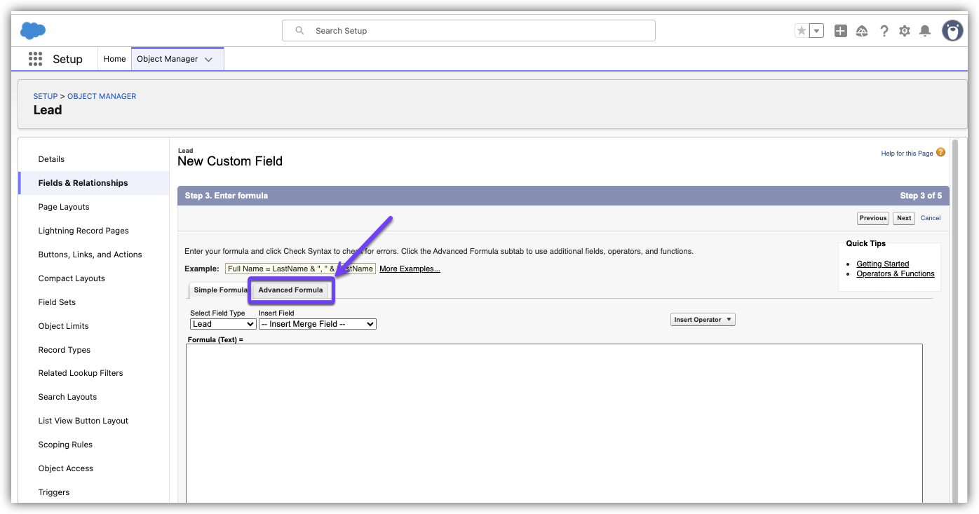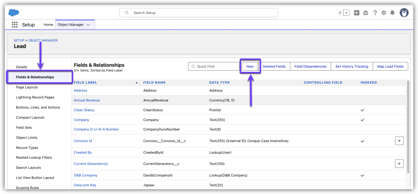 6.) On the page for the selected Object, click on Fields & Relationships in the left panel.