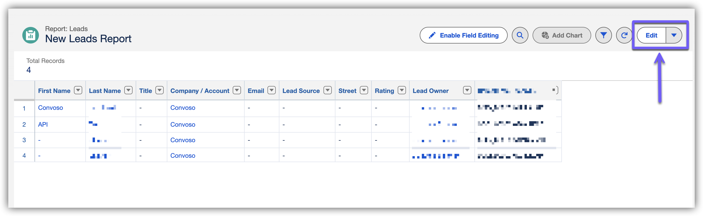 1.) On the Reports main view, click the Arrow button next to Edit.