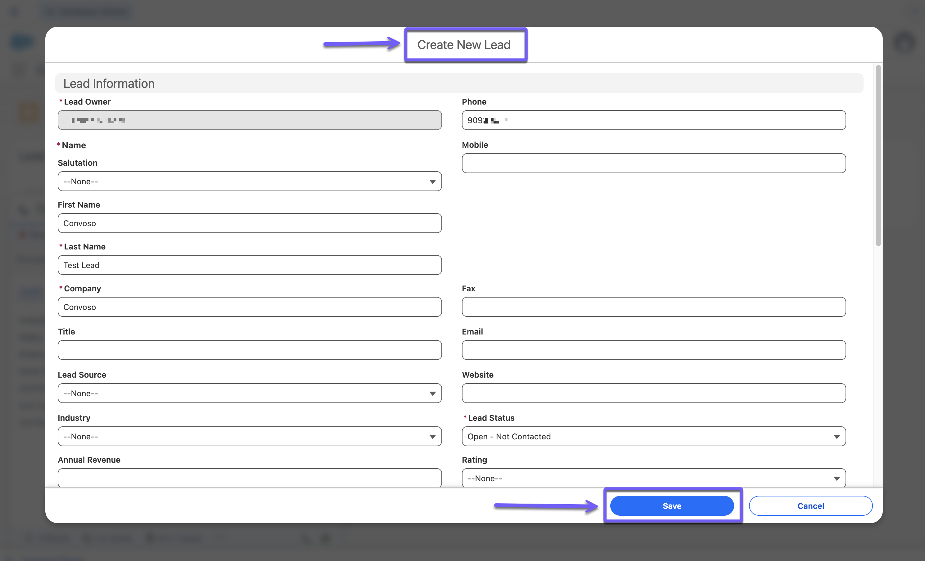 If there is no match: The user is given the option to create a record. The Salesforce Record will automatically be associated to the Convoso Record. |