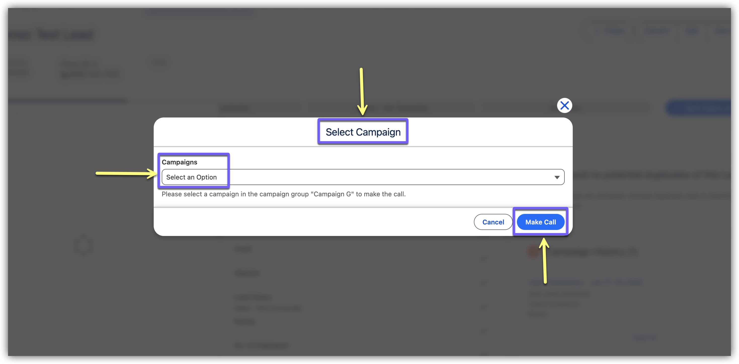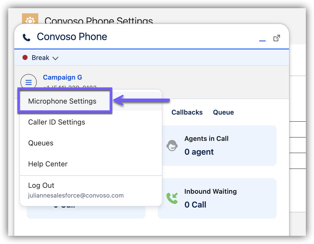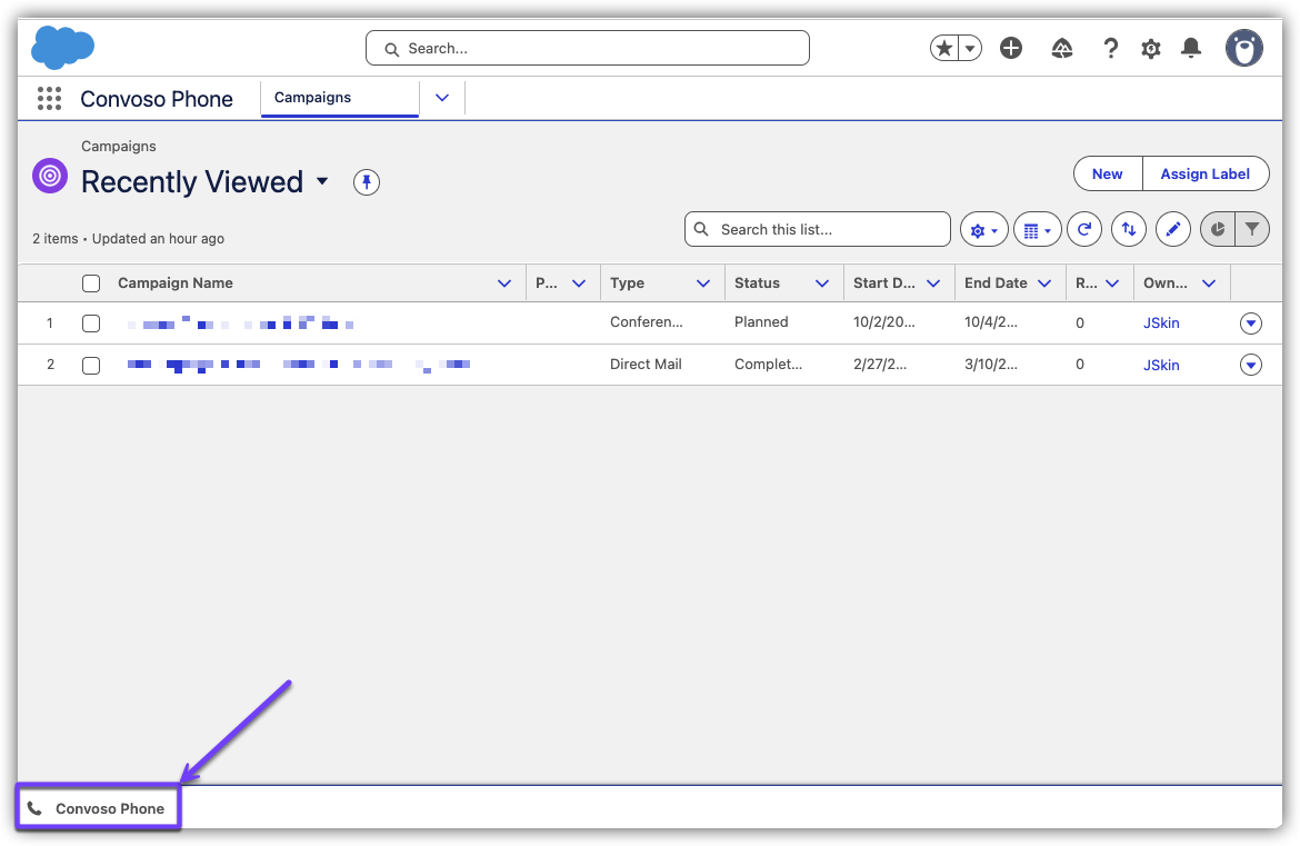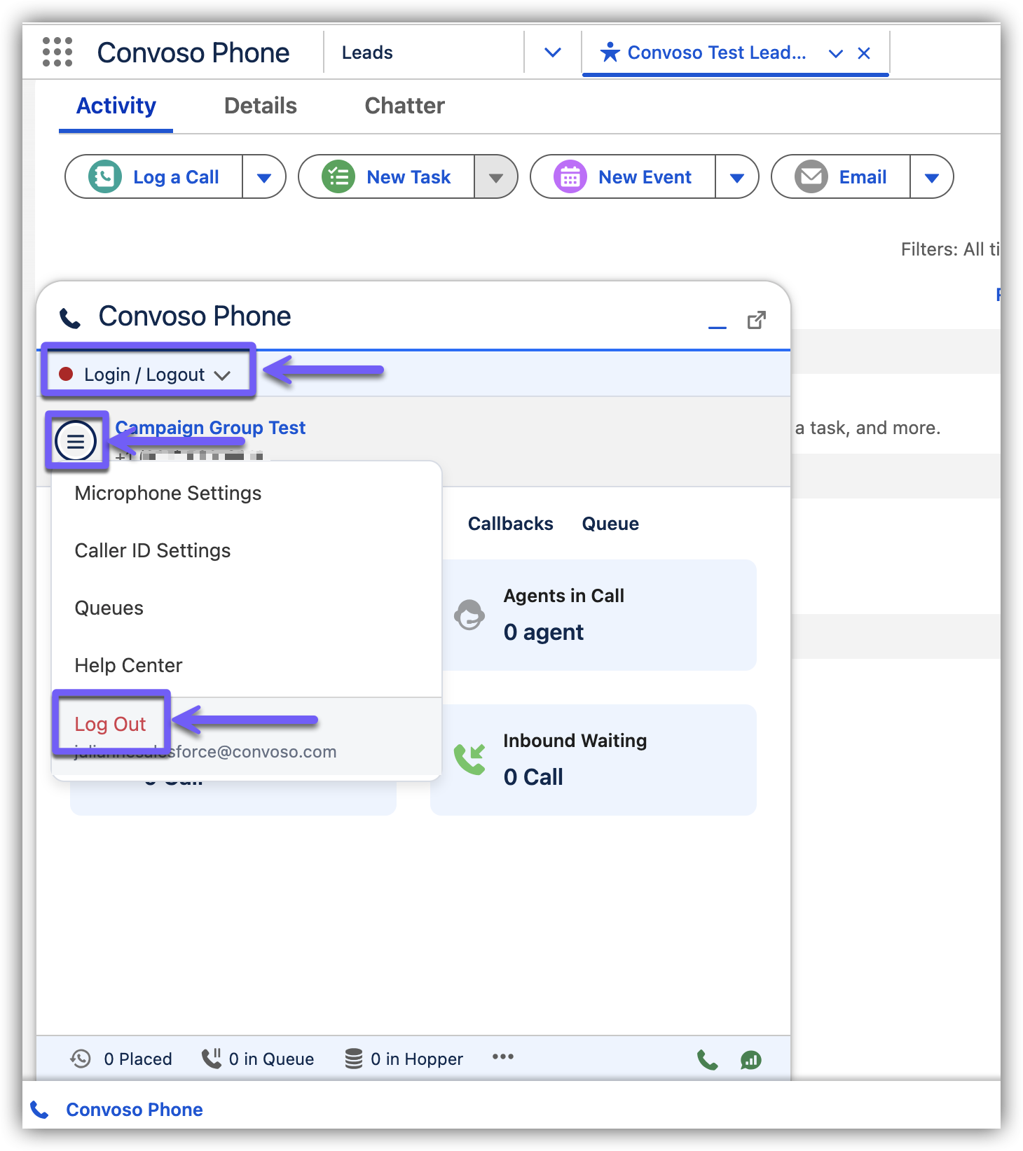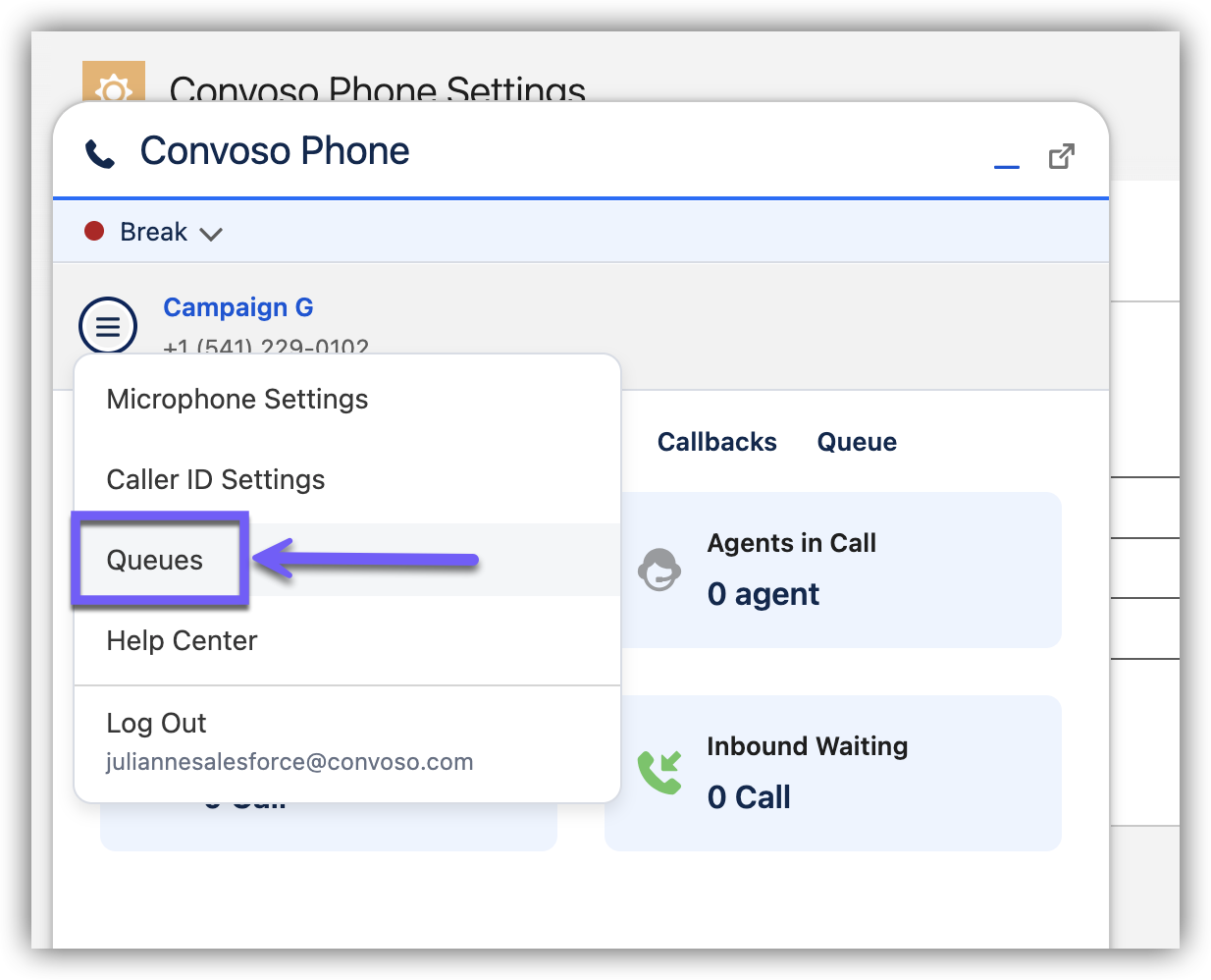 | From the Convoso for Salesforce CTI Adaptor, click on the current Campaign name. |