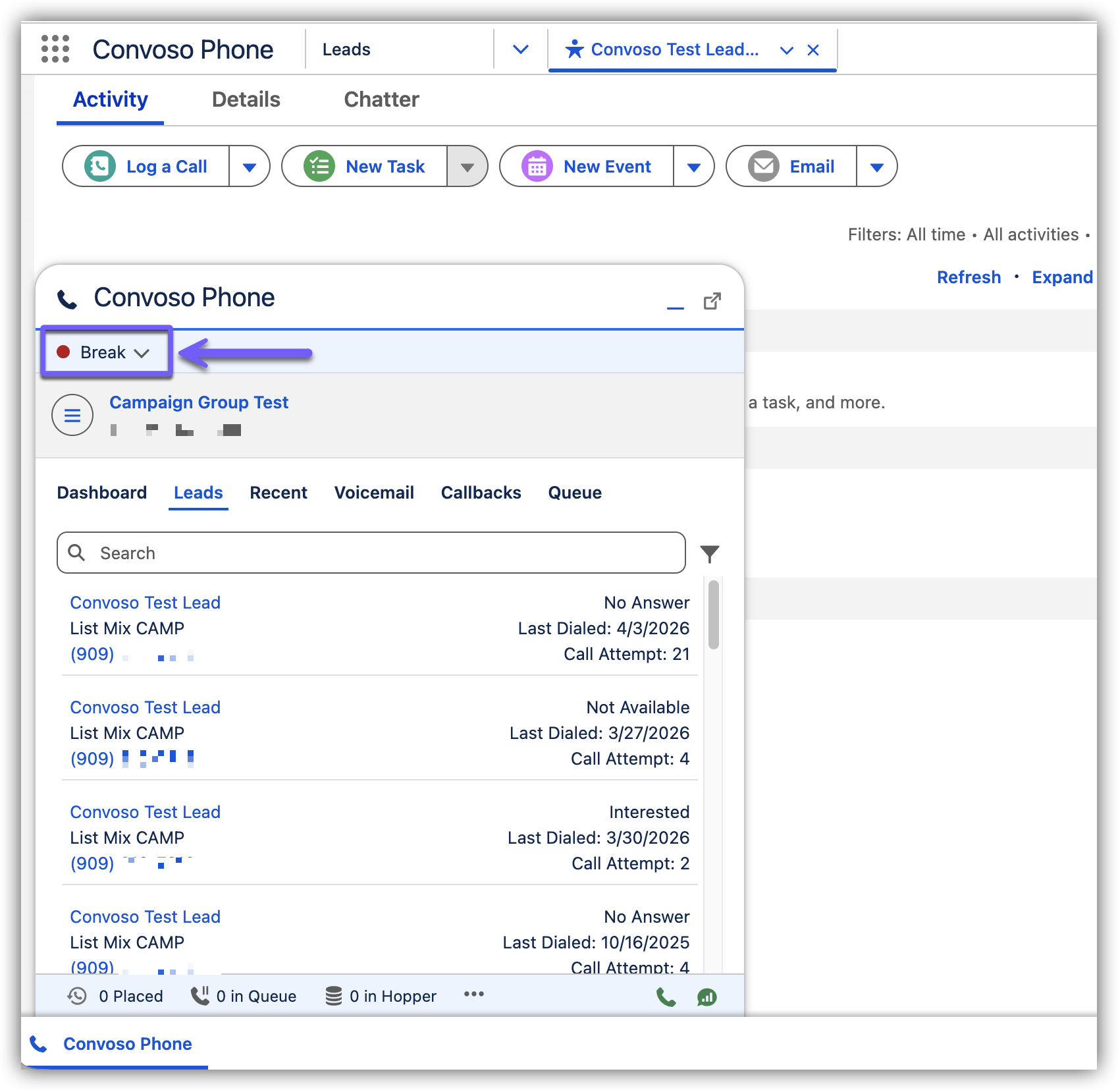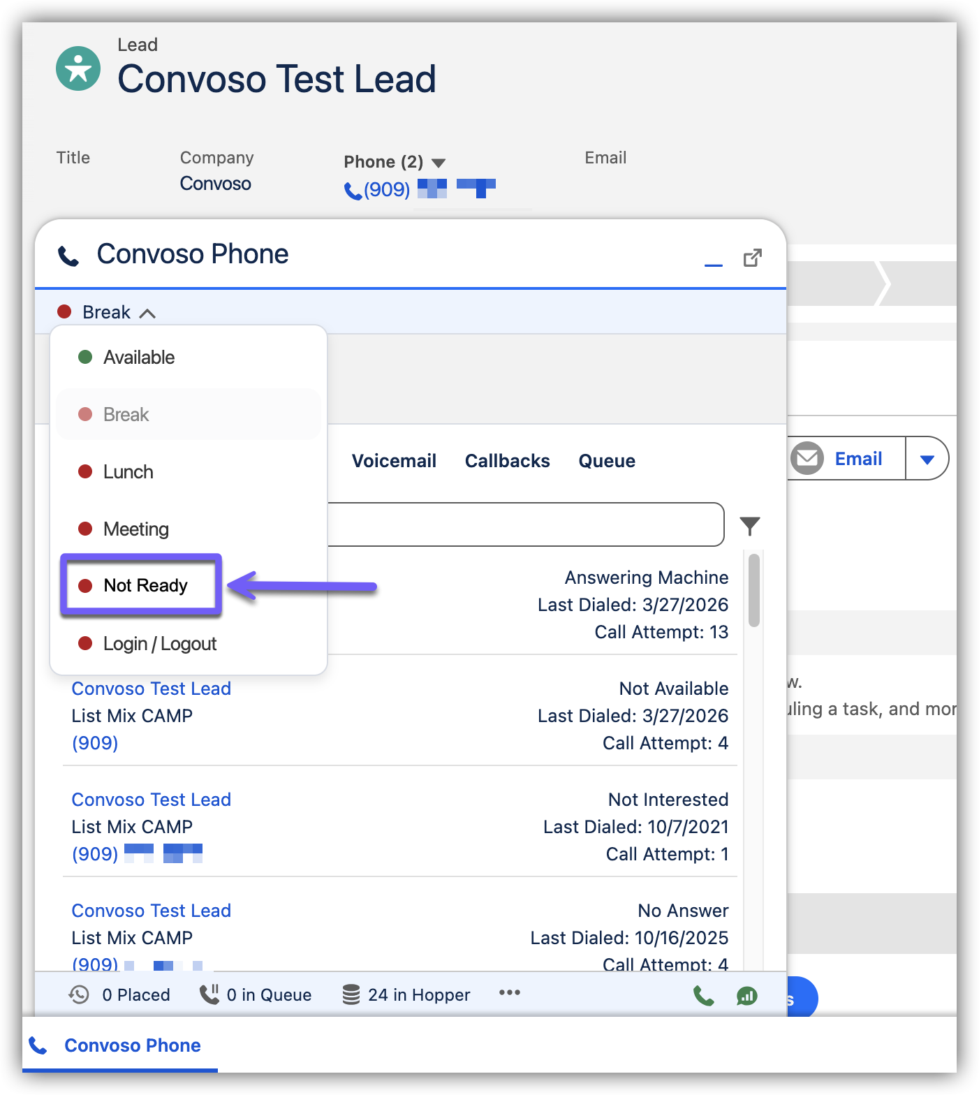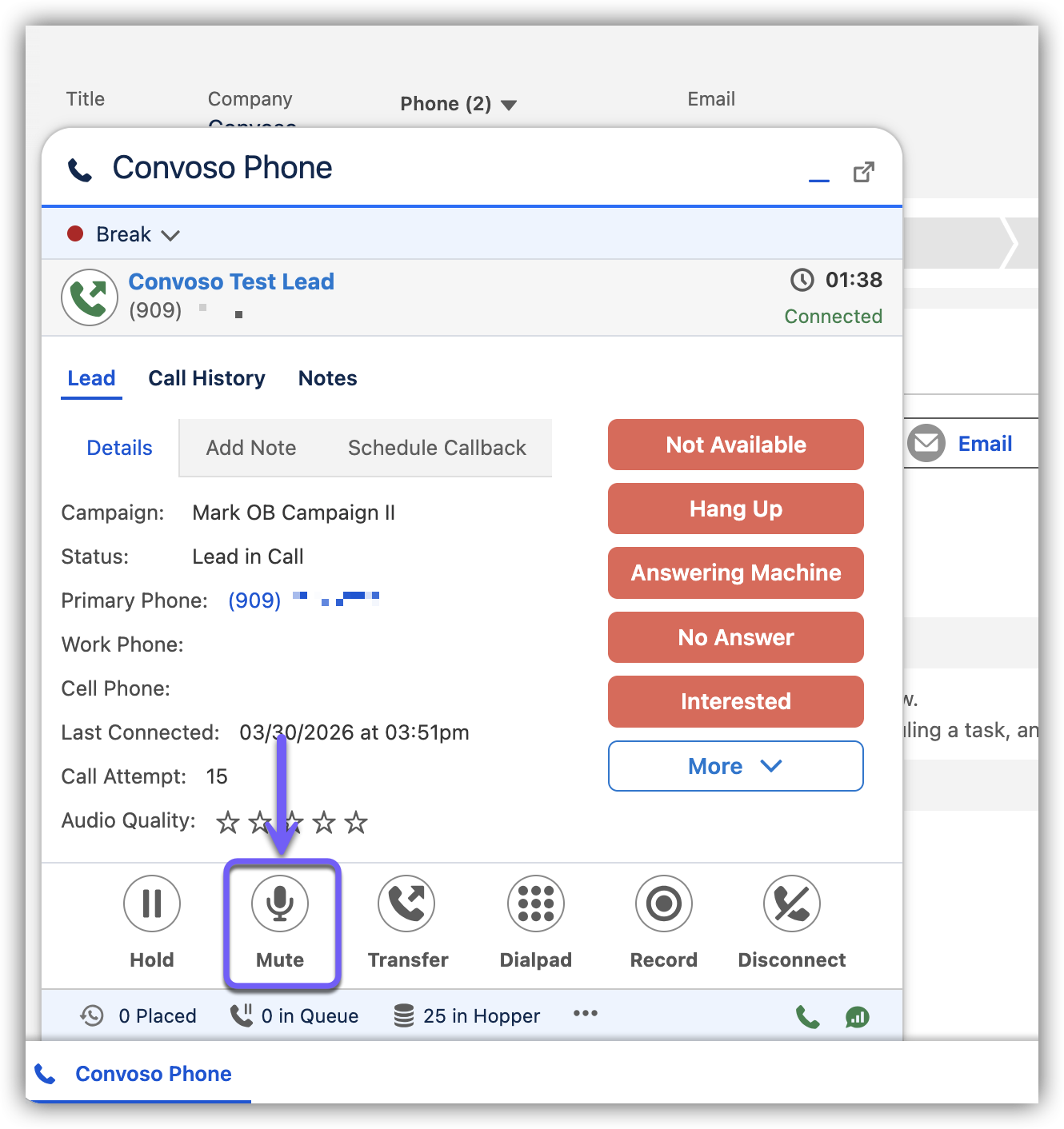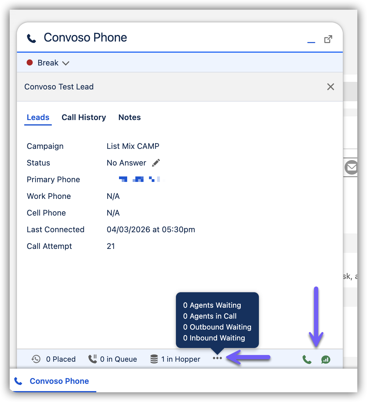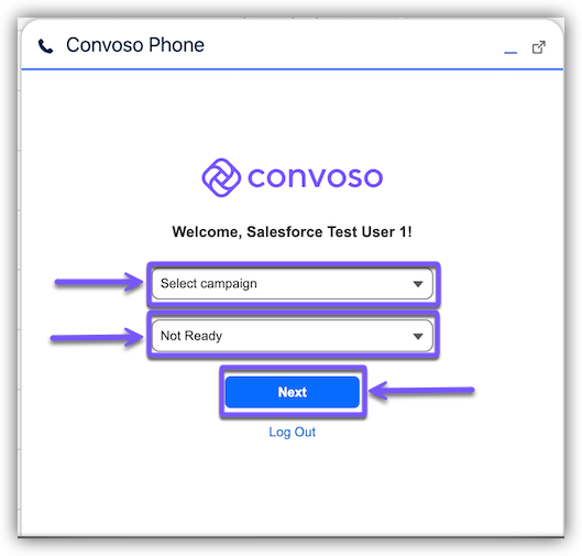 If your Agent account is assigned to an outbound campaign in Convoso, calls will be delivered automatically to the softphone.