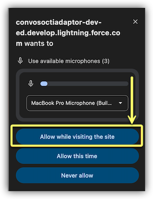 If prompted to enable Microphone Access, Select Allow while visiting the site.