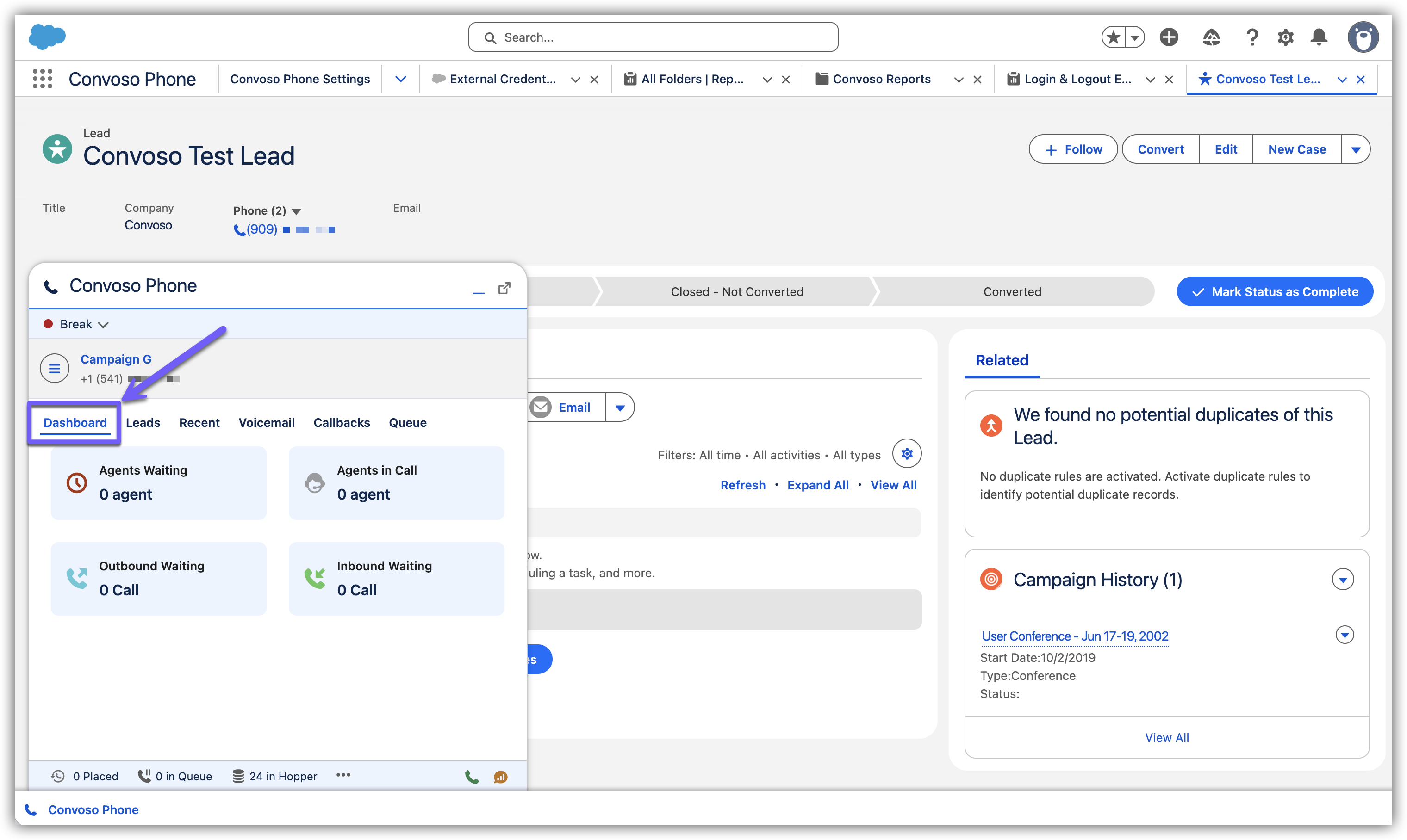 The Convoso for Salesforce CTI Adaptor integrates Convoso’s cloud-based call center platform directly into Salesforce, enabling agents to place, receive, and manage calls without leaving the CRM. This guide explains how to use all major features, including inbound handling, outbound dialing, click‑to‑call, activity logging, and screen pops.