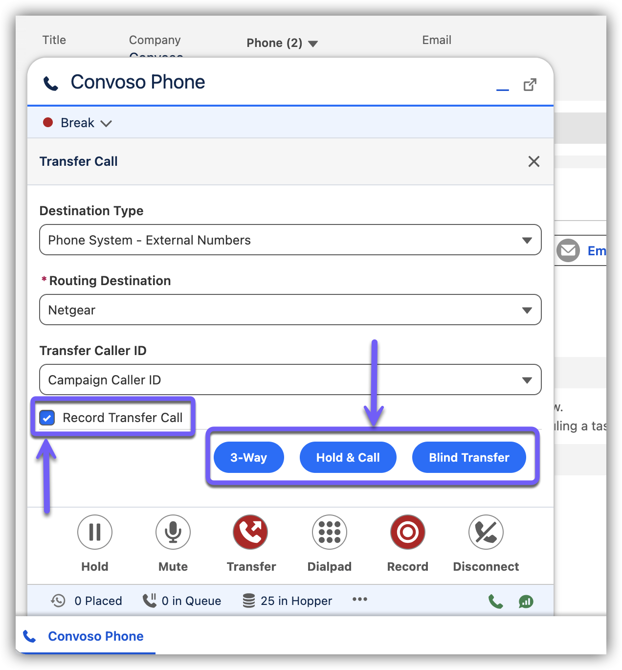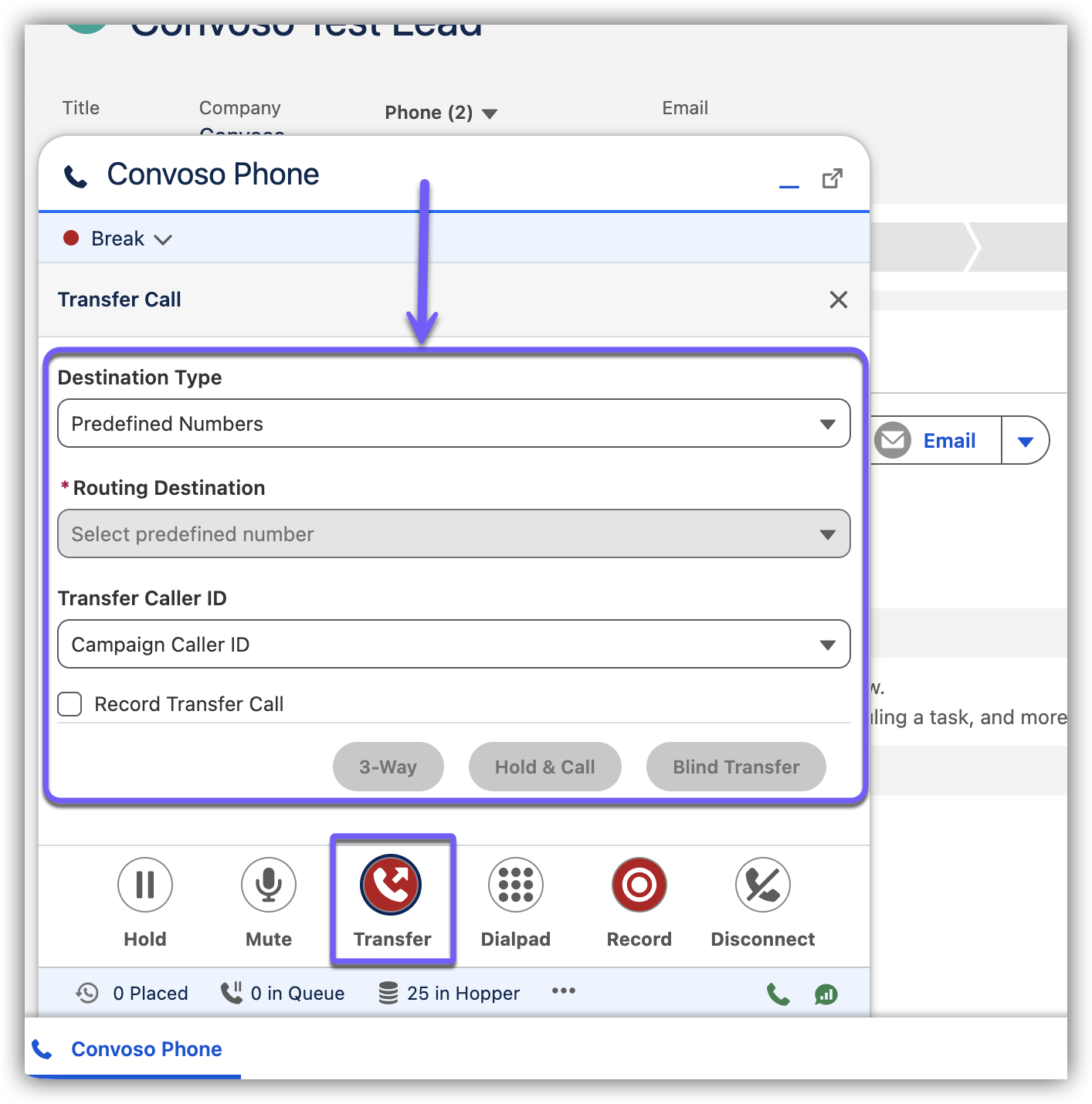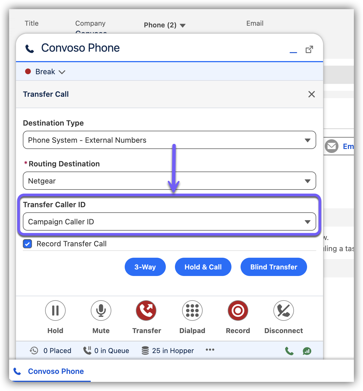 | The Transfer Caller ID may only contain the Campaign Caller ID option. |
