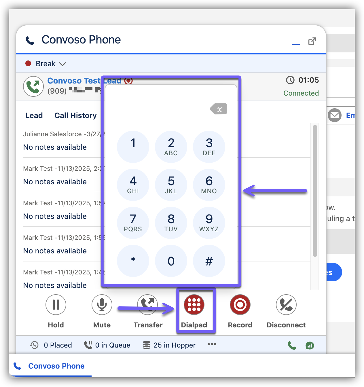 | The Dial Pad can be used for situations where the Agent may need to enter an extension or type a press 1 selection. |